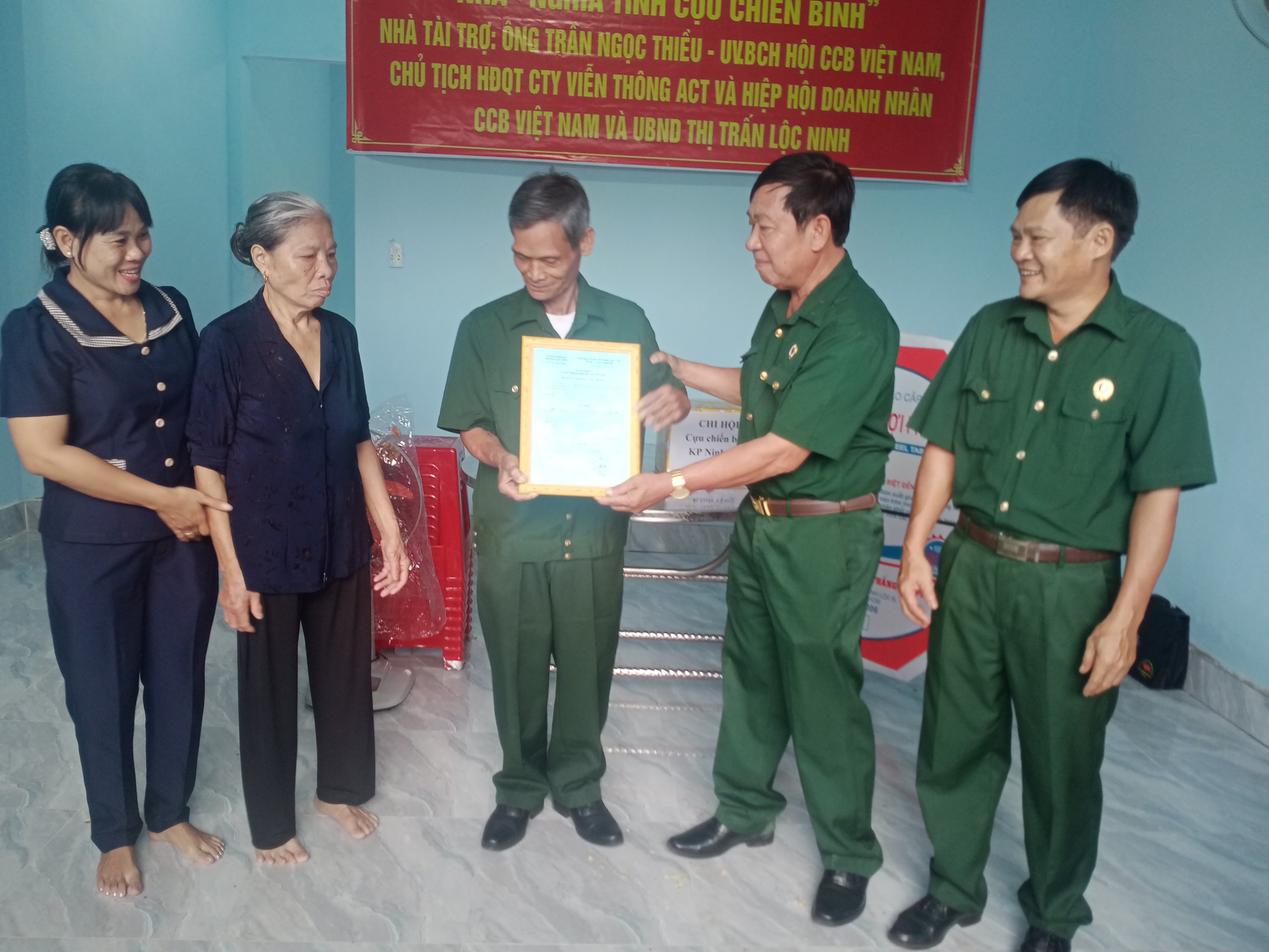 Sau gần 2 tháng khởi công xây dựng, căn nhà hoàn thiện và bàn giao cho hộ gia đình sử dụng. Tổng diện tích căn nhà 70m2, kinh phí xây dựng 130 triệu đồng. Trong đó, doanh nhân Trần Ngọc Thiều, Ủy viên Ban chấp hành Hội Cựu chiến binh Việt Nam, Phó Chủ tịch Hiệp hội Doanh nhân Cựu chiến binh Việt Nam, Chủ tịch HĐQT Công ty Viễn thông ACT hỗ trợ 60 triệu đồng; Hiệp hội Doanh nhân Cựu chiến binh Việt Nam hỗ trợ 20 triệu đồng; cấp ủy, chính quyền, MTTQ thị trấn Lộc Ninh và Hội Cựu chiến binh huyện Lộc Ninh hỗ trợ 10 triệu đồng, gia đình có kiệm 40 triệu đồng.