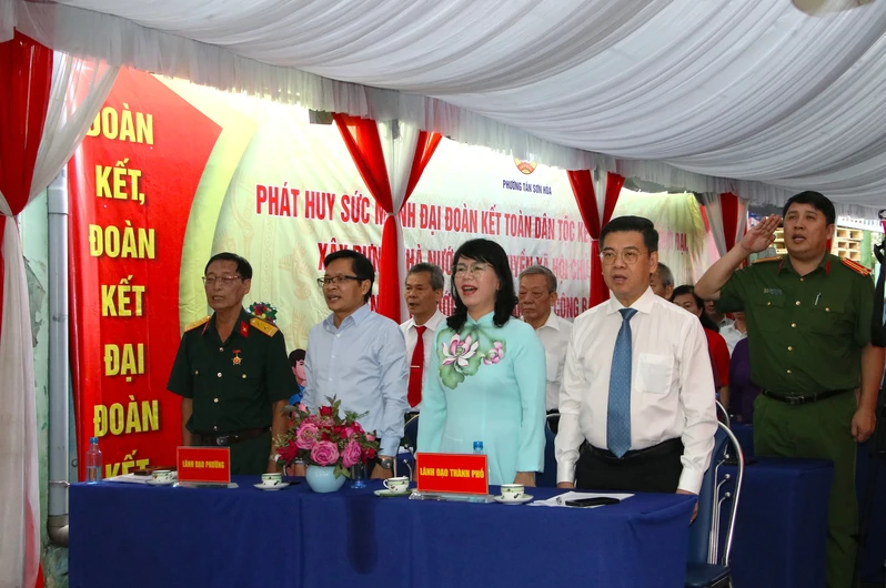 Dự chương trình có đồng chí Trương Lê Mỹ Ngọc, Bí thư Đảng ủy, Chủ tịch Hội đồng nhân dân phường; đồng chí Trần Minh Vũ, Phó Bí thư Đảng ủy, Chủ tịch Ủy ban nhân dân phường cùng các đồng chí Thường trực Hội đồng nhân dân, Ủy ban nhân dân phường, Ủy ban Mặt trận Tổ quốc; các tổ chức chính trị – xã hội, phòng ban chuyên môn phường Tân Sơn Hòa và đông đảo Nhân dân khu phố 28.