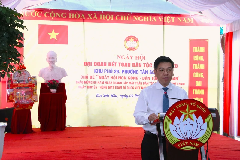 Phát biểu chỉ đạo tại Ngày hội, đồng chí Nguyễn Văn Dũng, Thành ủy viên, Phó Chủ tịch Ủy ban nhân dân Thành phố Hồ Chí Minh đánh giá cao những kết quả đạt được của cộng đồng dân cư khu phố 28, phường Tân Sơn Hòa; đồng thời mong muốn thời gian tới toàn dân khu phố hướng đến tiếp thu nâng cao trình độ công nghệ thông tin trong tuyên truyền, vận động; đoàn kết huy động nguồn lực xã hội nhằm hỗ trợ giúp đỡ người nghèo, người yếu thế nâng cao đời sống vật chất, tinh thần; thực hiện tốt, có hiệu quả các cuộc vận động, các phong trào do Mặt trận Tổ quốc phát động và các phong trào thi đua yêu nước tại địa phương; phát huy dân chủ, tích cực tham gia giám sát và phản biện xã hội, góp phần xây dựng hệ thống chính trị cơ sở vững mạnh; tiếp tục củng cố, đoàn kết, xây dựng Khu phố văn hóa, tích cực vận động nhân dân tham gia bảo vệ môi trường, ứng phó biến đổi khí hậu, xây dựng cảnh quan xanh, sạch đẹp tại khu dân cư.
