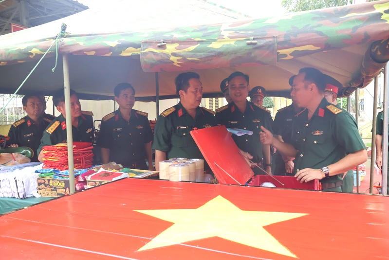 Đại tá Huỳnh Văn Dũng, Trưởng Phòng Chính sách, Cục Chính trị Quân khu và Đại tá Bùi Văn Sỹ, Phó Chính ủy Bộ CHQS tỉnh Đồng Nai chủ trì thăm, kiểm tra.