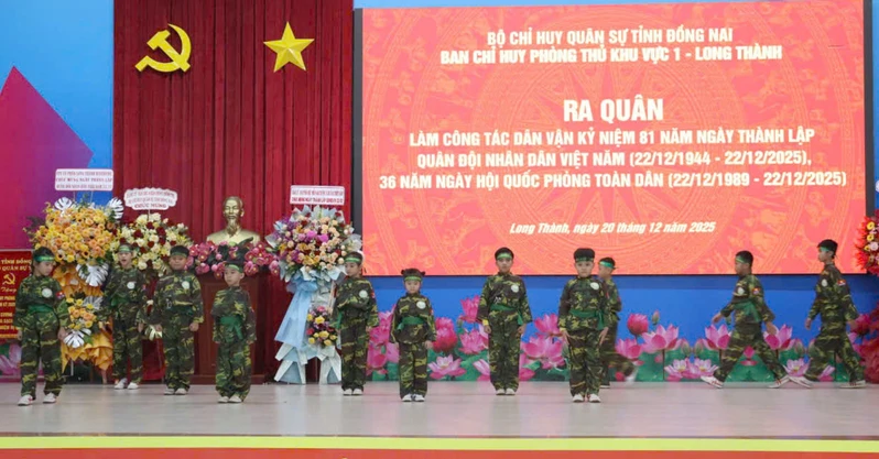 (QK7 Online) - Nhân kỷ niệm 81 năm Ngày thành lập Quân đội Nhân dân Việt Nam (22/12/1944 - 22/12/2025), 36 năm Ngày hội Quốc phòng toàn dân và 80 năm Ngày truyền thống lực lượng vũ trang Quân khu 7 (10/12/1945 - 10/12/2025), ngày 20/12, Ban Chỉ huy phòng thủ Khu vực 1 (CHPTKV1) - Long Thành, Bộ Chỉ huy Quân sự tỉnh Đồng Nai tổ chức ra quân làm công tác dân vận năm 2025 trên địa bàn 5 xã, phường: Tam Phước, Bình An, Long Phước, Long Thành và Phước Thái (tỉnh Đồng Nai).