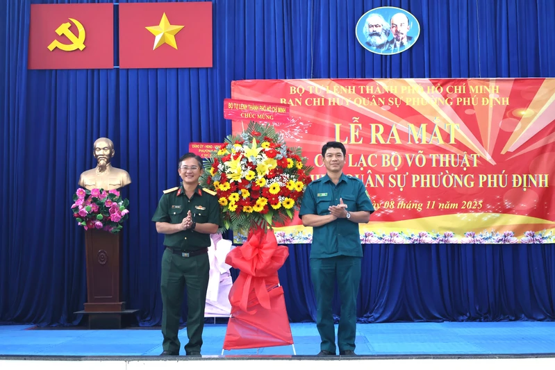Bộ Tư lệnh TP. Hồ Chí Minh tặng hoa chúc mừng Câu lạc bộ Võ thuật phường Phú Định.