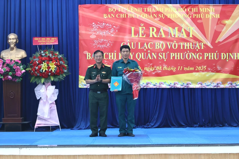 (QK7 Online) – Ngày 8/11, Ban CHQS phường Phú Định (Bộ Tư lệnh TP. Hồ Chí Minh) tổ chức Lễ ra mắt Câu lạc bộ Võ thuật.