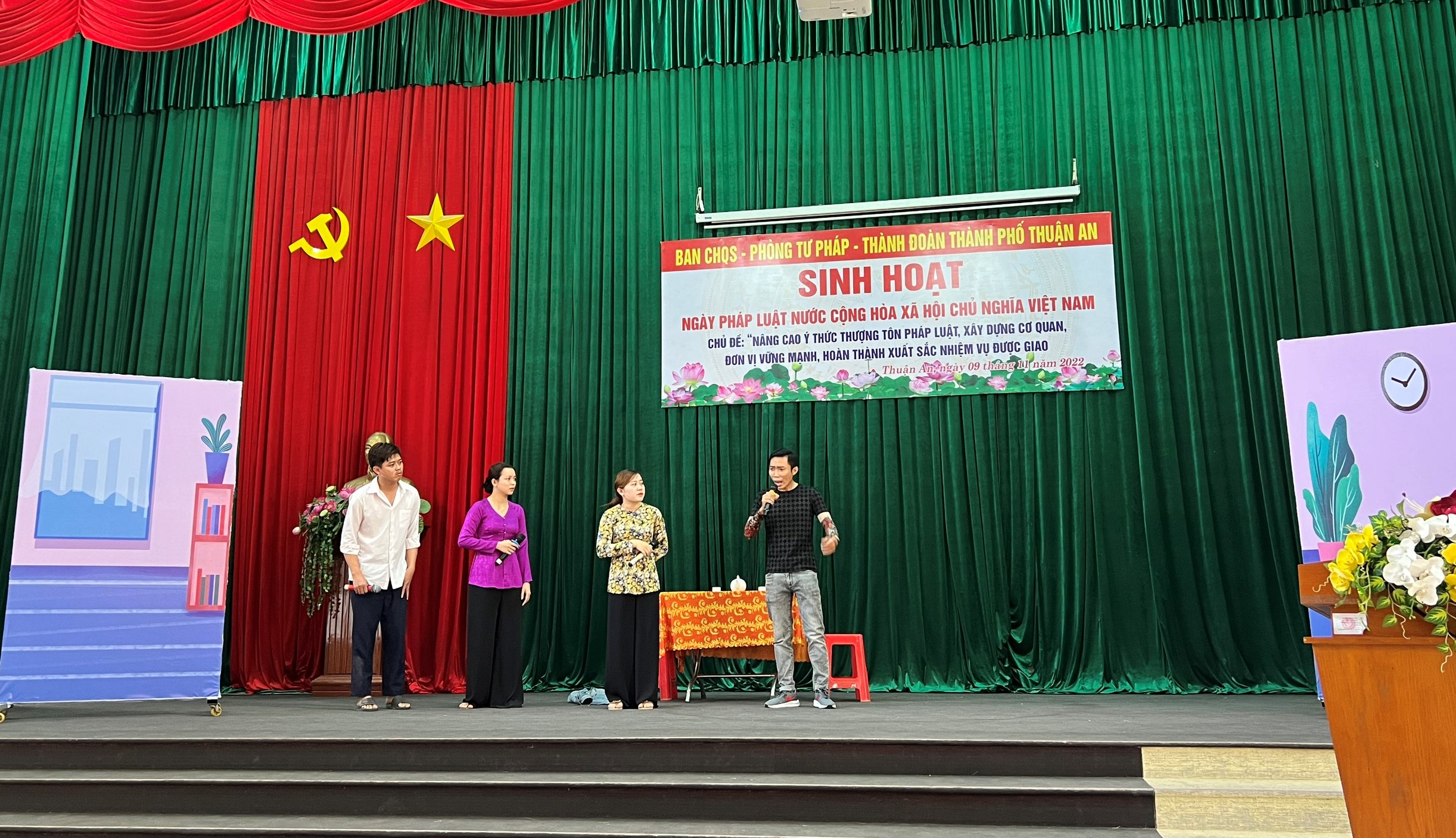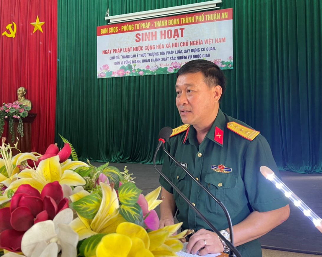 (QK7 Online) - Ngày 9-11, Ban CHQS thành phố, Phòng Tư pháp, Thành đoàn thành phố Thuận An, tỉnh Bình Dương sinh hoạt Ngày Pháp luật nước cộng hòa xã hội chủ nghĩa Việt Nam năm 2022.
