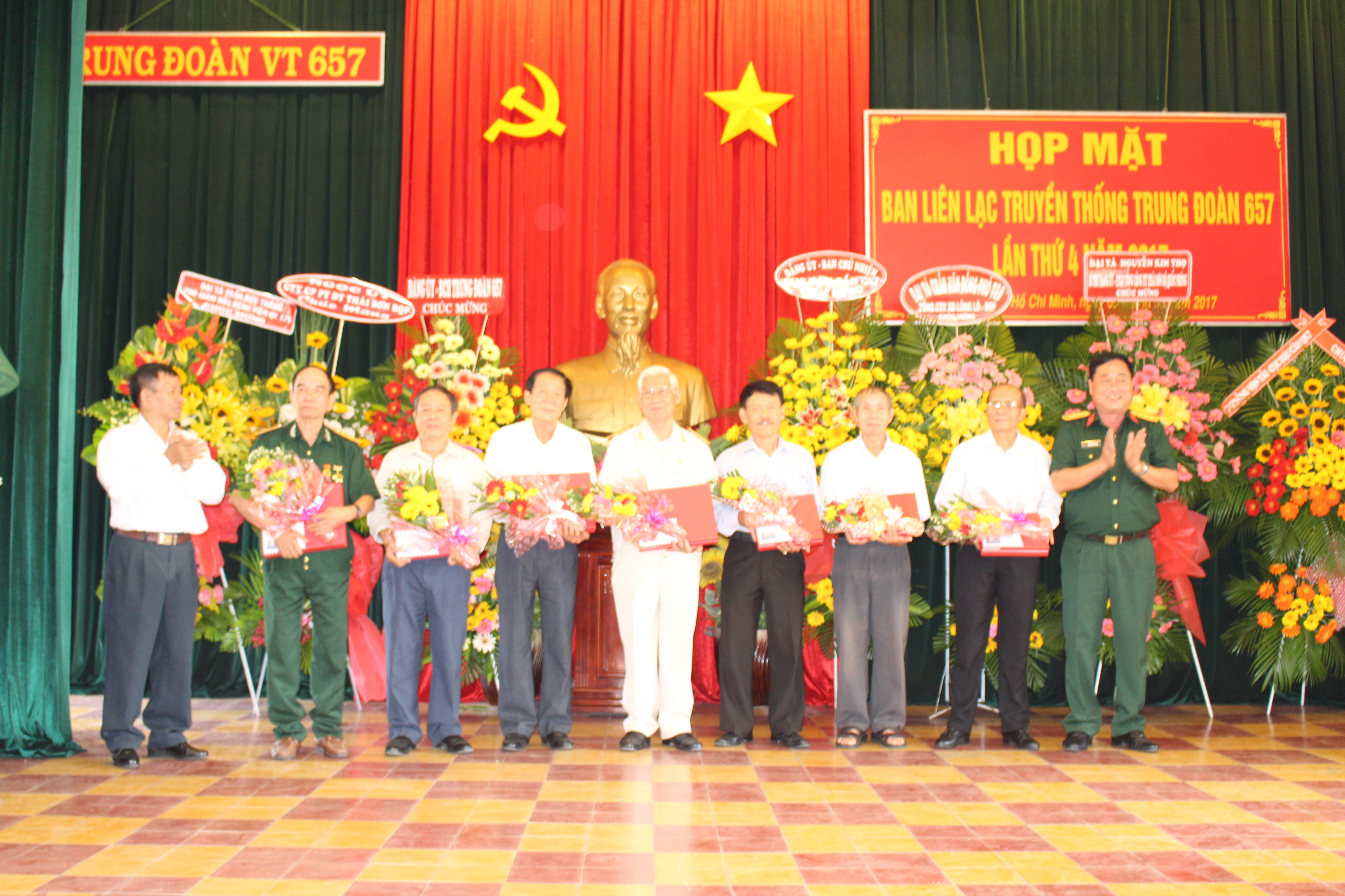 (QK7 Online) Hướng tới chào mừng kỷ niệm 36 năm ngày thành lập Trung đoàn Vận tải 657 (10/3/1981 – 10/3/2017), tại Trung đoàn Vận tải 657, Ban Liên lạc truyền thống tổ chức họp mặt kỷ niệm lần thứ 4. Tới dự có Thượng tá Nguyễn Thành Phương, Trung đoàn trưởng; Thượng tá Trịnh Văn Minh, Chính ủy trung đoàn; đại biểu các phòng nghiệp vụ Cục Hậu cần, cùng các đồng chí nguyên là lãnh đạo Cục Hậu cần qua các thời kỳ, các đồng chí nguyên lãnh đạo Ban Chỉ huy trung đoàn, gần 200 Cựu chiến binh Trung đoàn qua các thời kỳ tham gia buổi họp mặt.