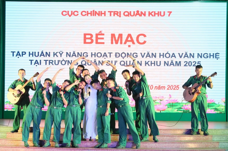 (QK7 Online) - Tối 30/10, tại Thành phố Hồ Chí Minh đã diễn ra buổi bế mạc chương trình tập huấn kỹ năng hoạt động văn hóa, văn nghệ (VHVN) cho cán bộ khung và học viên Tiểu đội trưởng năm 2025 tại Trường Quân sự Quân khu 7. Đại tá Nguyễn Như Trúc, Phó Chủ nhiệm Chính trị Quân khu dự chương trình.