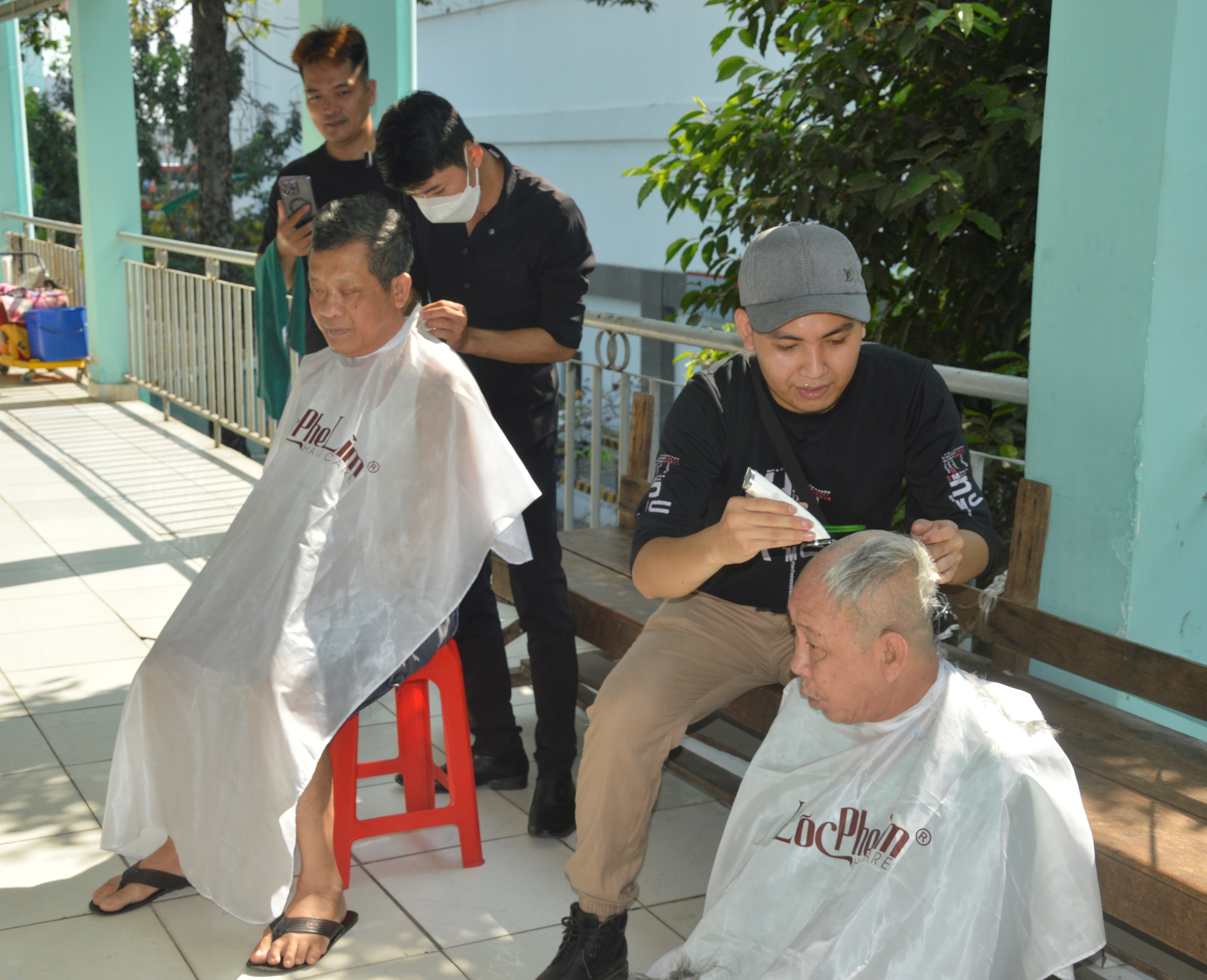 Bệnh nhân được cắt tóc miễn phí.