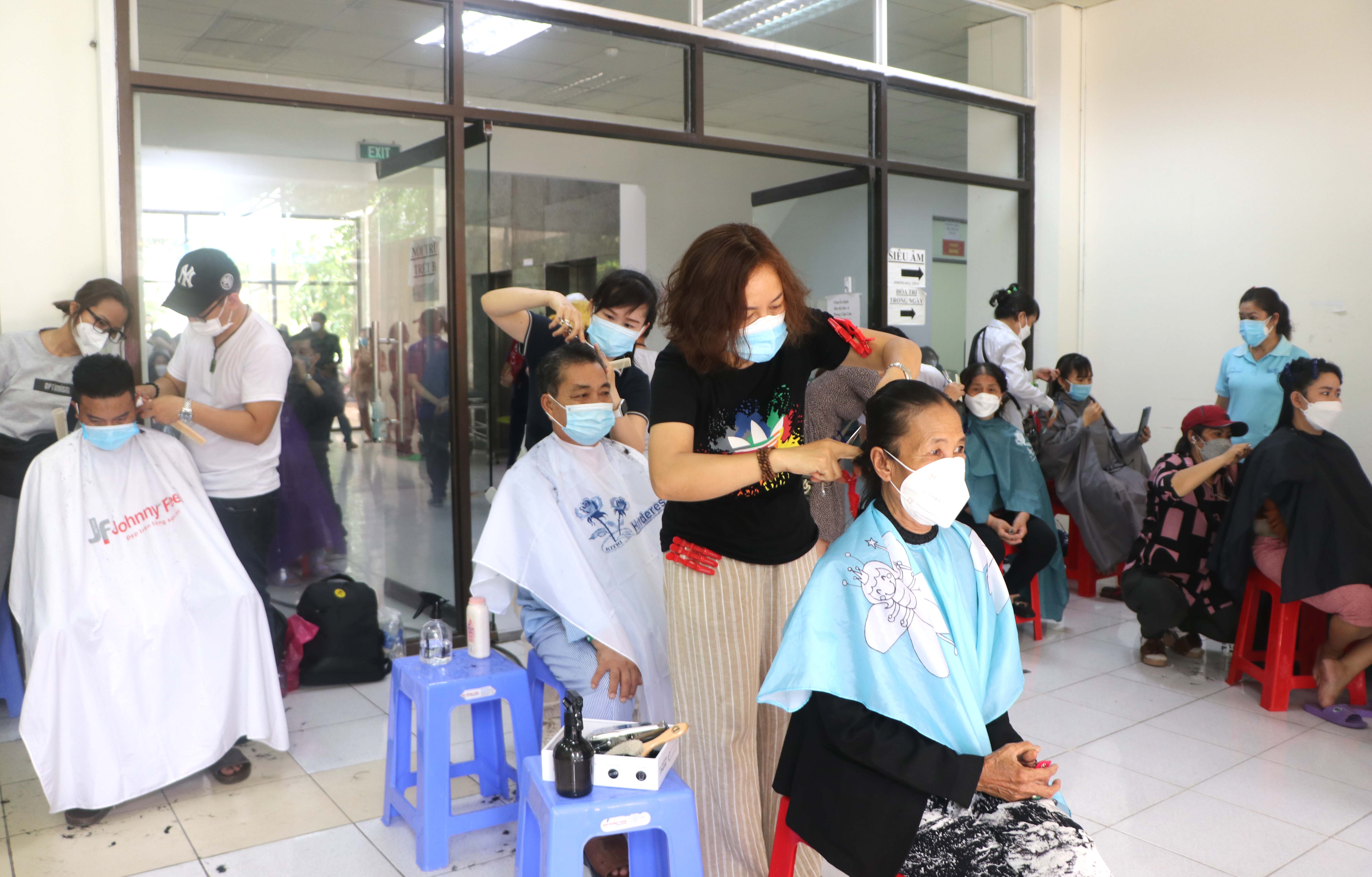 Nhóm thiện nguyện cắt tóc miễn phí cho bệnh nhân.