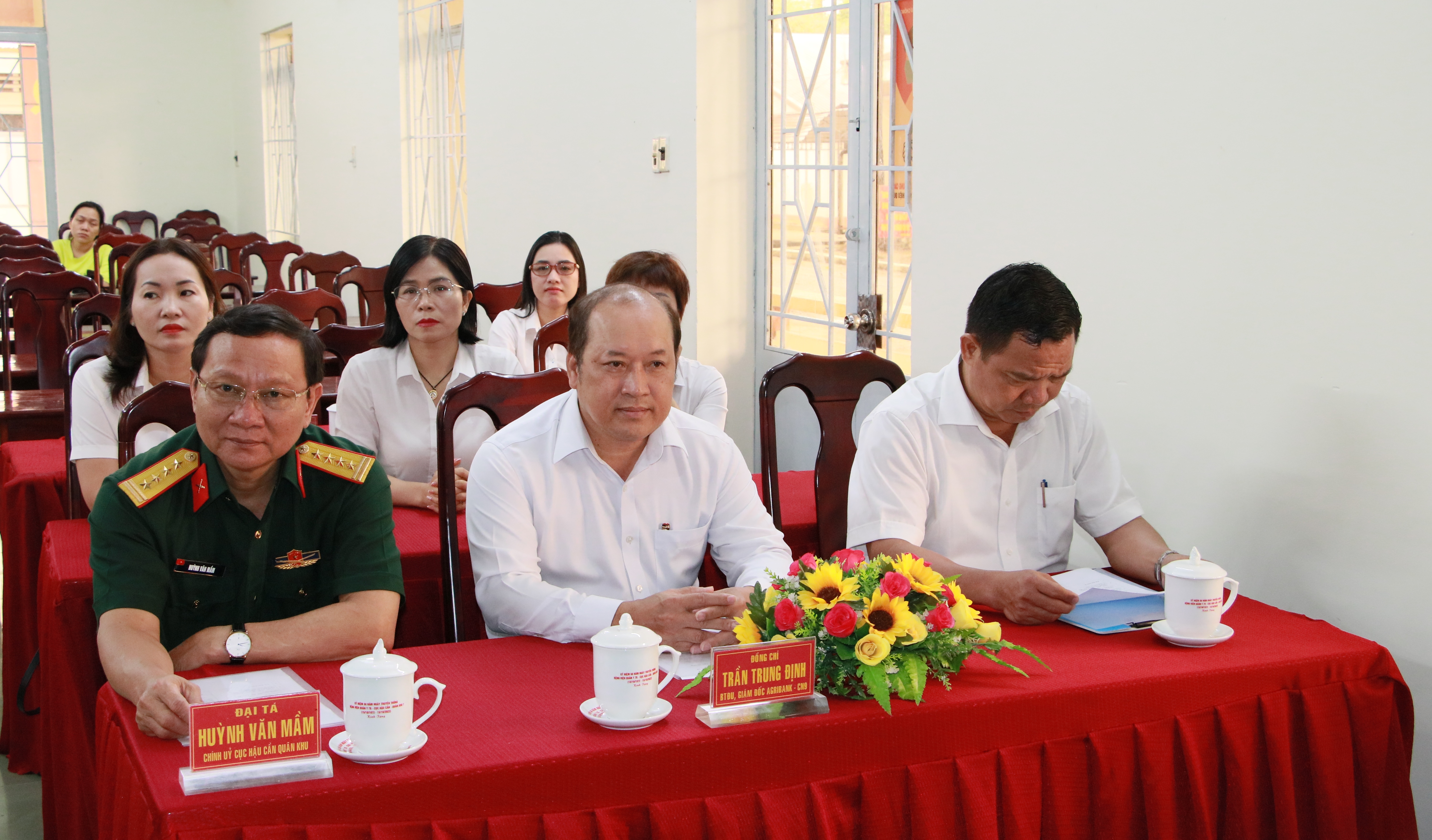 Đại tá Huỳnh Văn Mầm, Chính ủy Cục Hậu cần Quân khu và ông Trần Trung Định, Giám đốc Ngân hàng Agribank chi nhánh 9 (giữa) dự lễ.