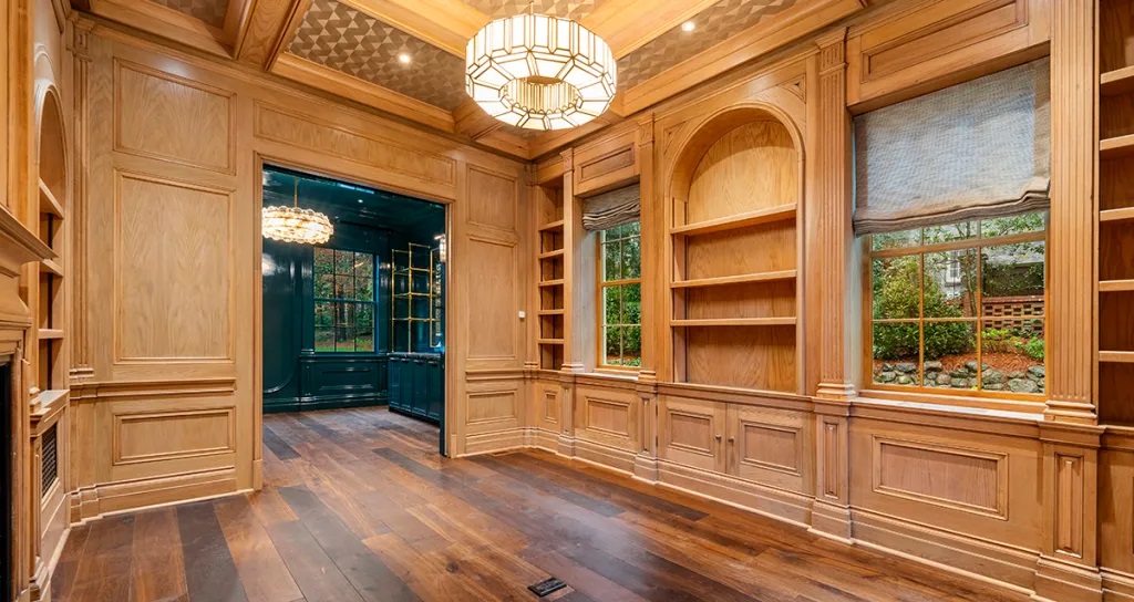 Phòng làm việc được ốp gỗ khô hơn 100 năm tuổi.