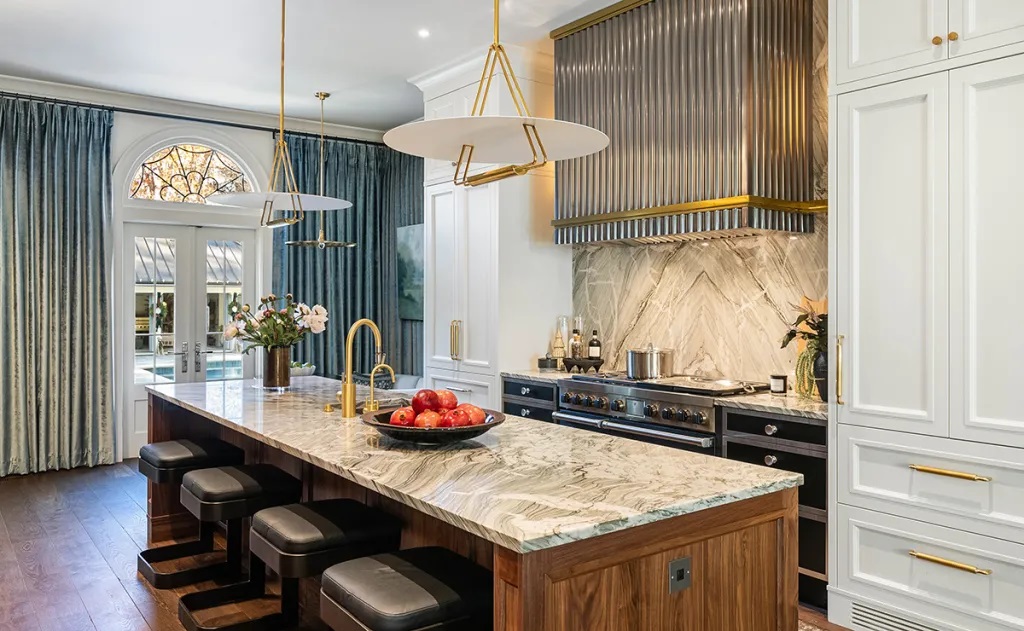 Phòng bếp hiện đại với các thiết bị cao cấp và khu vực chuẩn bị thực phẩm đặc biệt.