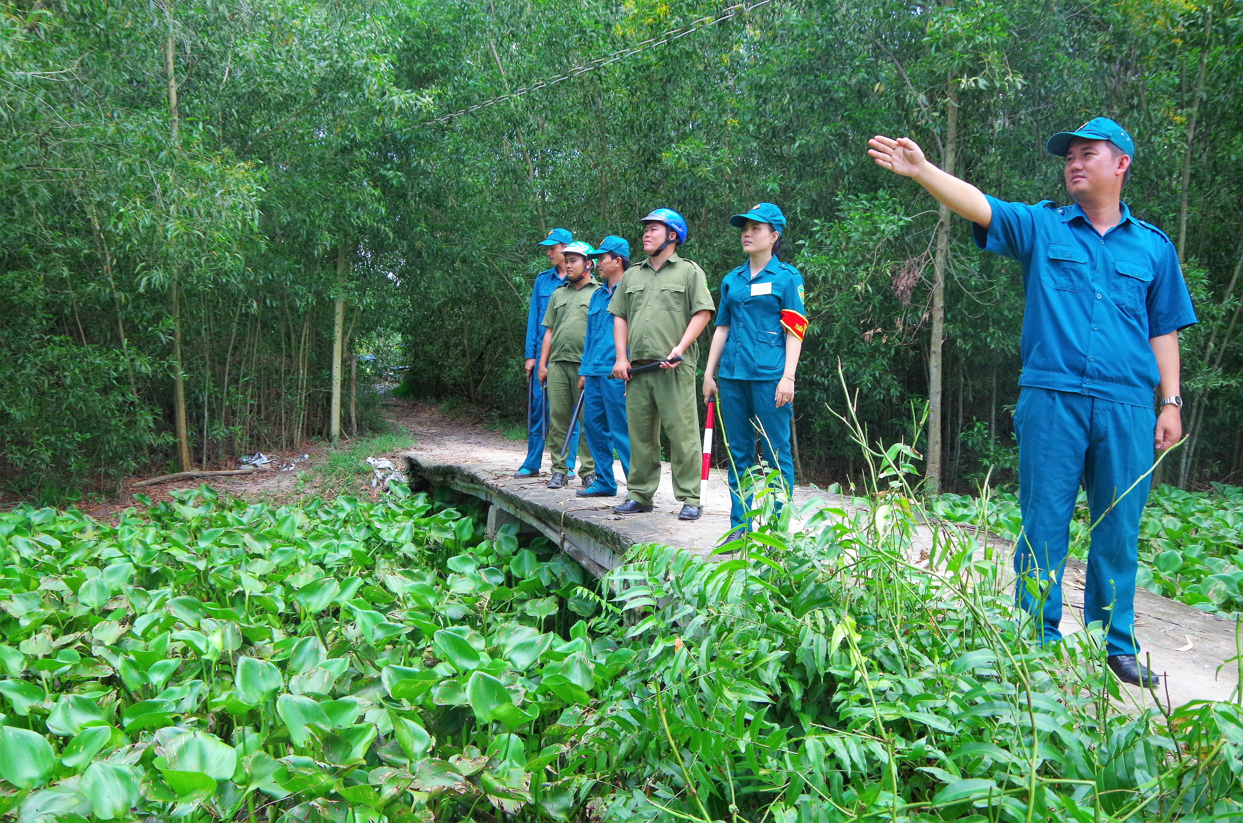 Cán bộ, chiến sĩ chốt dân quân Mỹ Quý Tây phối hợp tuần tra.