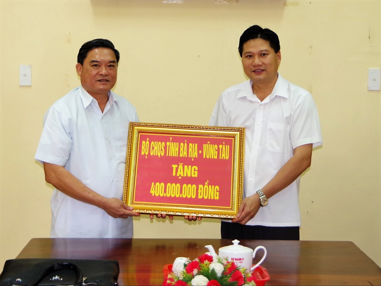 Đại tá Phạm Phú Ý, Chỉ huy trưởng Bộ CHQS tỉnh Bà Rịa – Vũng Tàu, trao tặng quà  Sư đoàn 5.