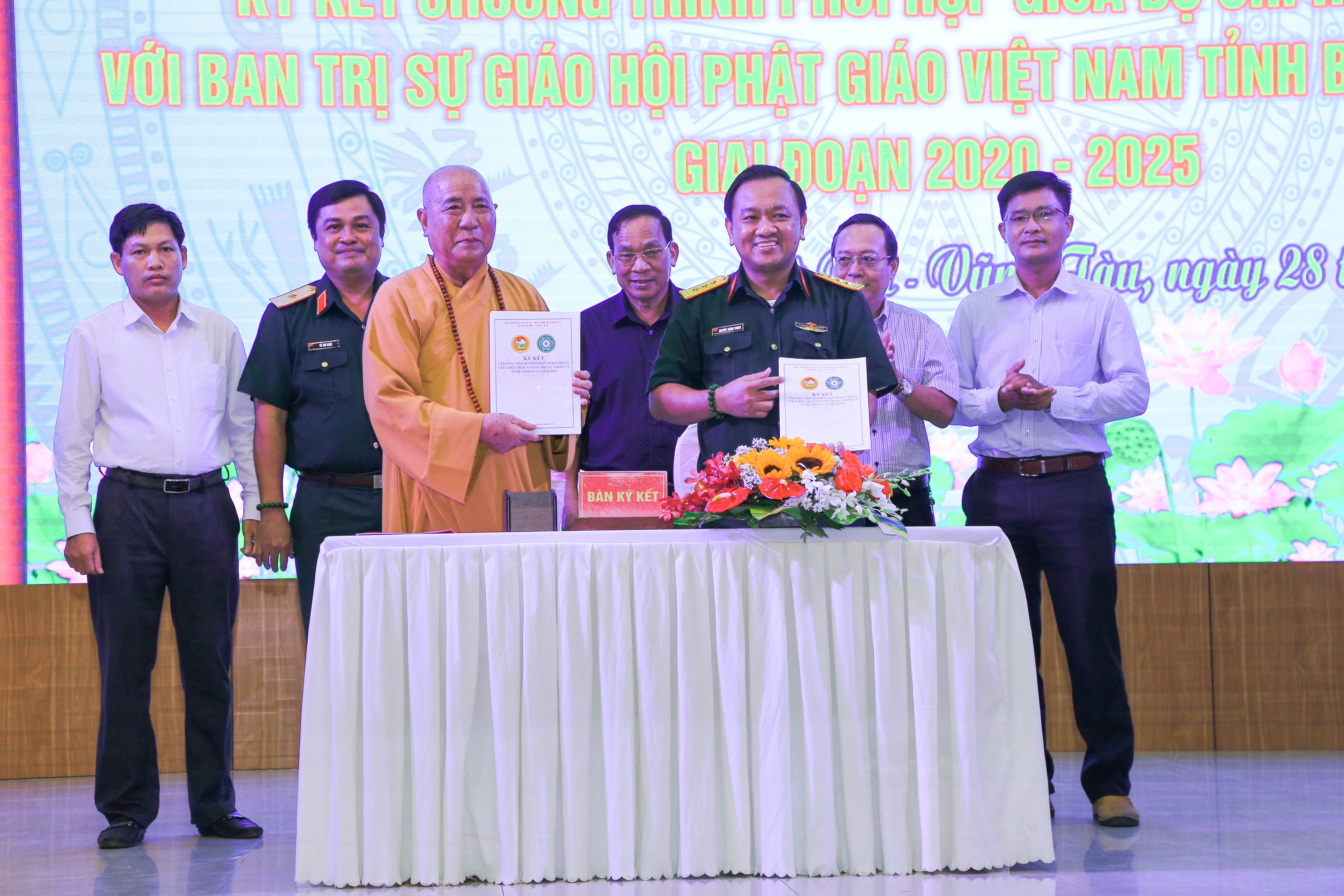Đại diện Bộ CHQS tỉnh và Ban Trị sự GHPGVN tỉnh ký kết chương trình phối hợp.