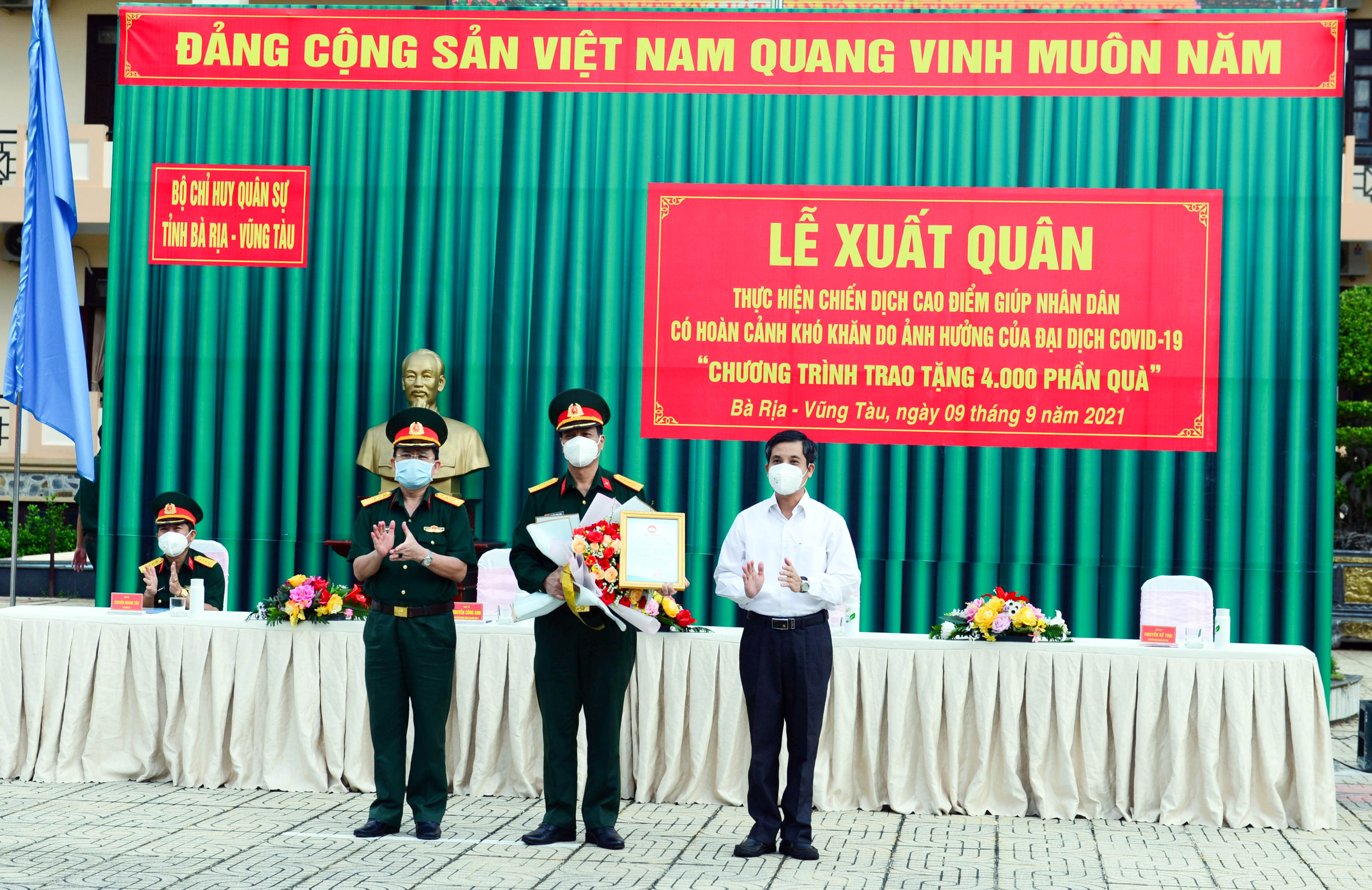 Sau lễ phát động, Bộ CHQS tỉnh tổ chức 3 đoàn xuất quân đến các huyện, thị xã, thành phố để trao tặng 1.500 phần quà giúp Nhân dân khó khăn do ảnh hưởng của đại dịch Covid-19. Mỗi phần quà trị giá 400 ngàn đồng, gồm gạo, mì tôm và một số nhu yếu phẩm thiết yếu.