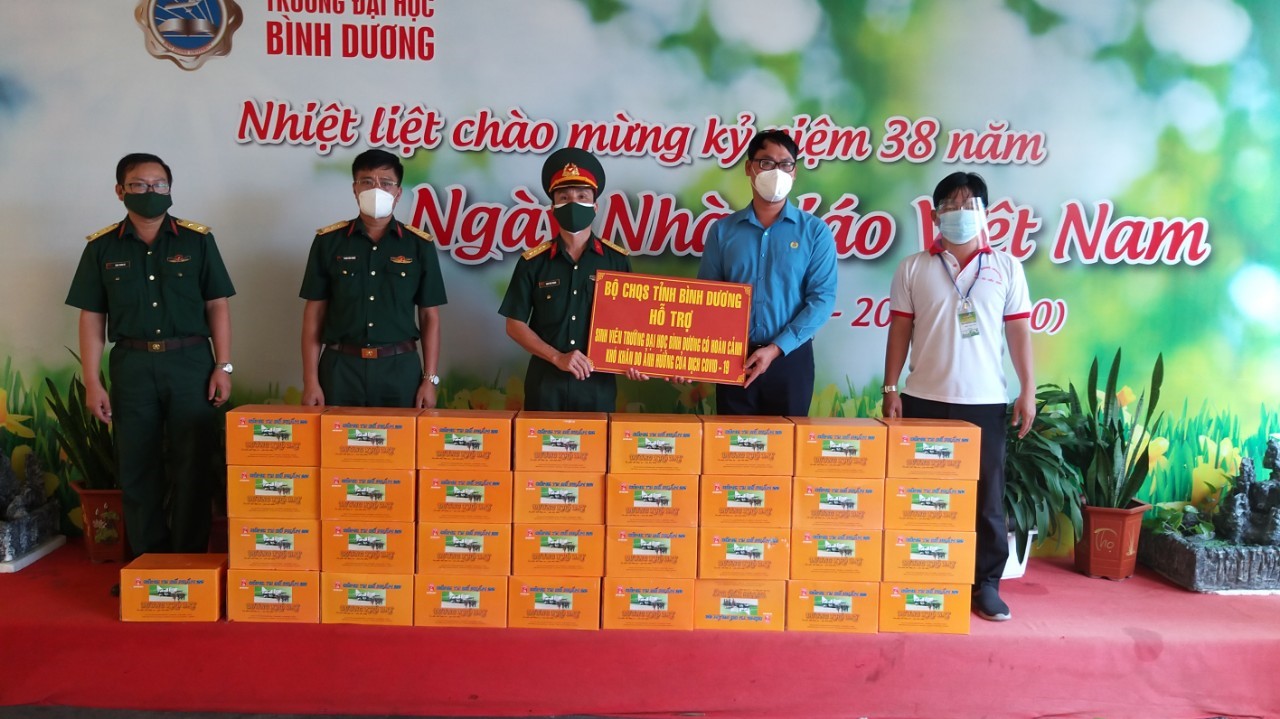 Cụ thể, Bộ CHQS tỉnh hỗ trợ Hội Chữ thập đỏ tỉnh 500kg, Trường Đại học Bình Dương và Đại học Thủ Dầu Một mỗi trường 250kg.