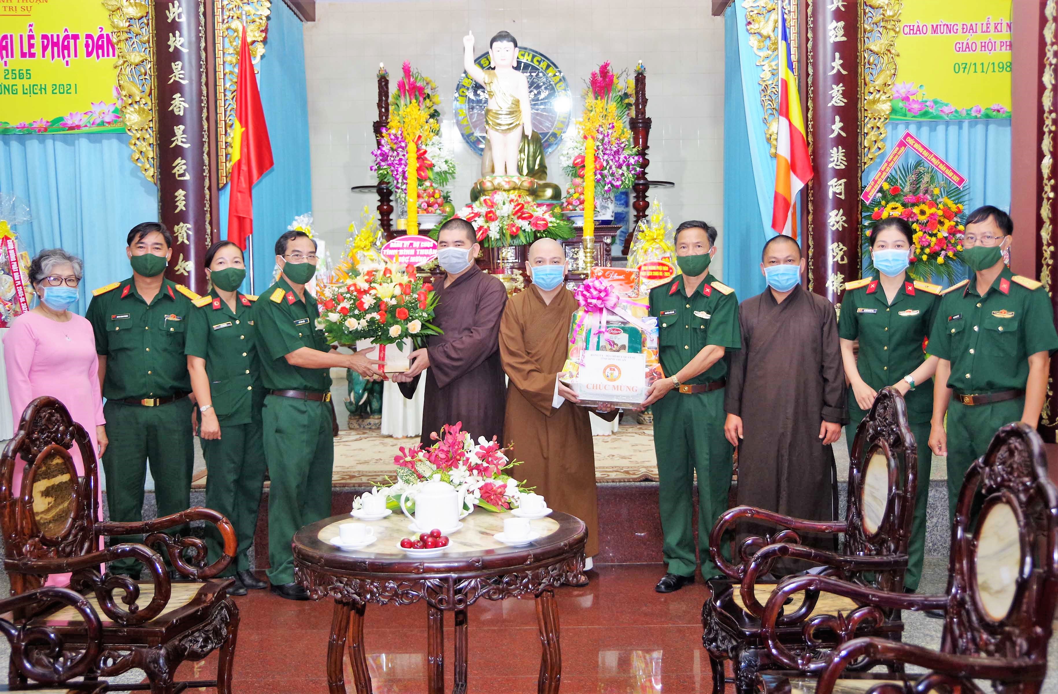 (QK7 Online) - Nhân dịp lễ Phật đản 2021, Đại tá Lê Văn Hội, Phó Chính ủy Bộ CHQS tỉnh đến thăm, tặng hoa, tặng quà Ban Trị sự Giáo hội Phật giáo Việt Nam tỉnh Bình Thuận.