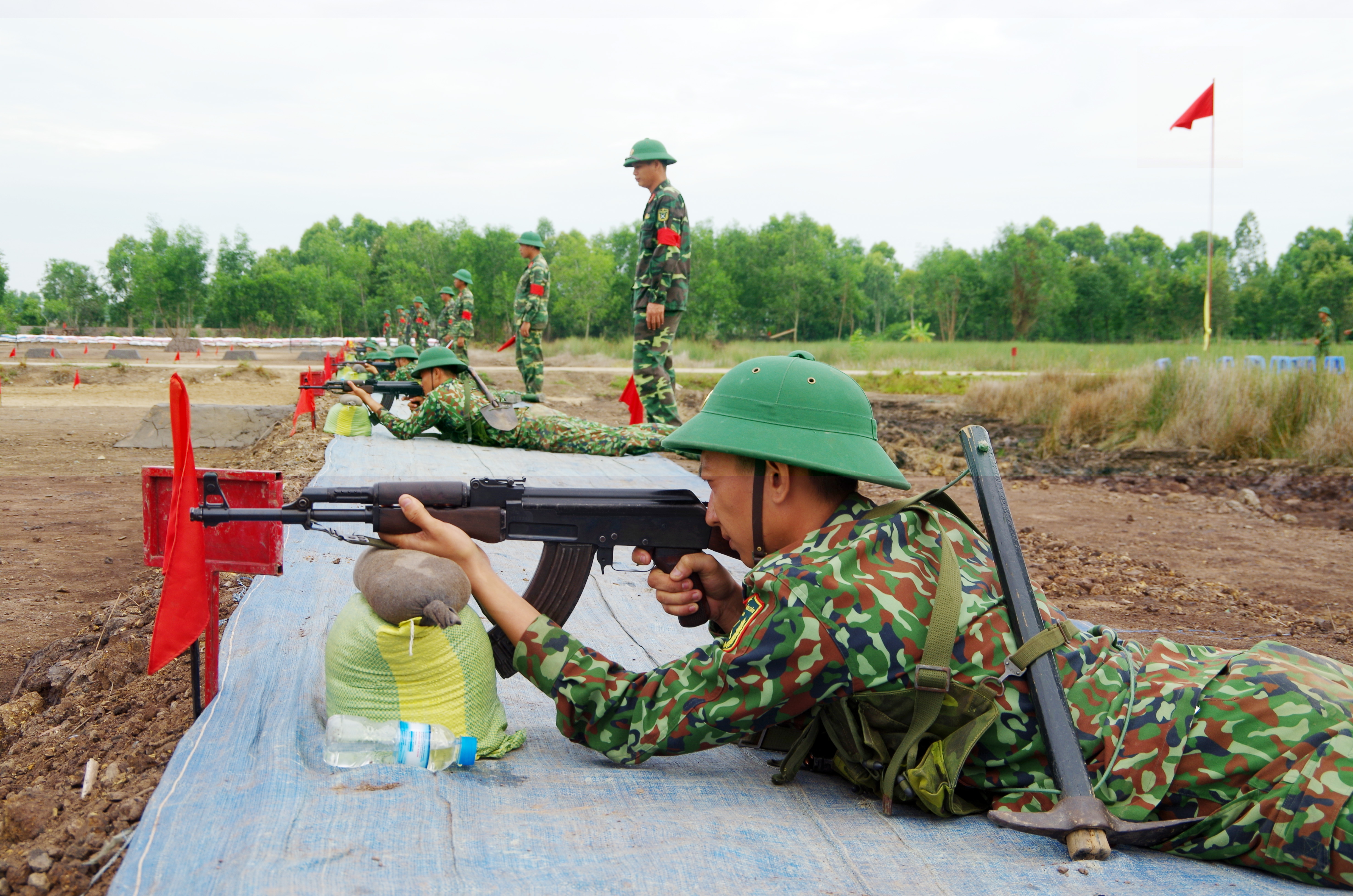 Chiến sĩ mới Trung đoàn 738, Bộ CHQS tỉnh Long An thực hành kiểm tra bắn đạn thật.