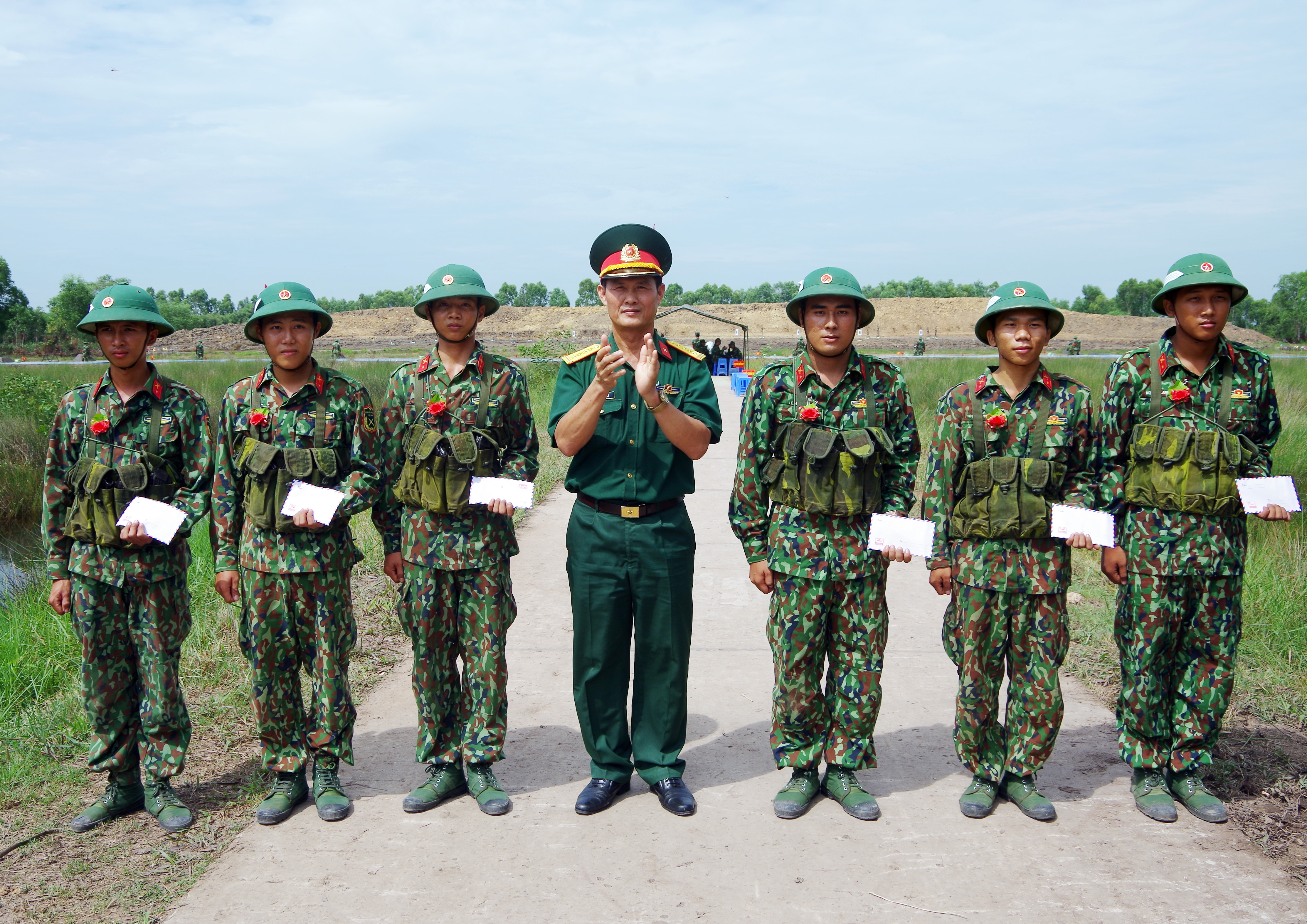 (QK7 Online) - Tại trường bắn Tân Đông, Bộ Tham mưu Quân khu 7 kiểm tra hệ thống văn kiện, tổ chức điều hành chỉ huy và hành động của chiến sĩ mới trong bắn đạn thật, đánh thuốc nổ, ném lựu đạn của Tiểu đoàn Tiểu đoàn 1, Trung đoàn bộ 738, Bộ CHQS tỉnh Long An.