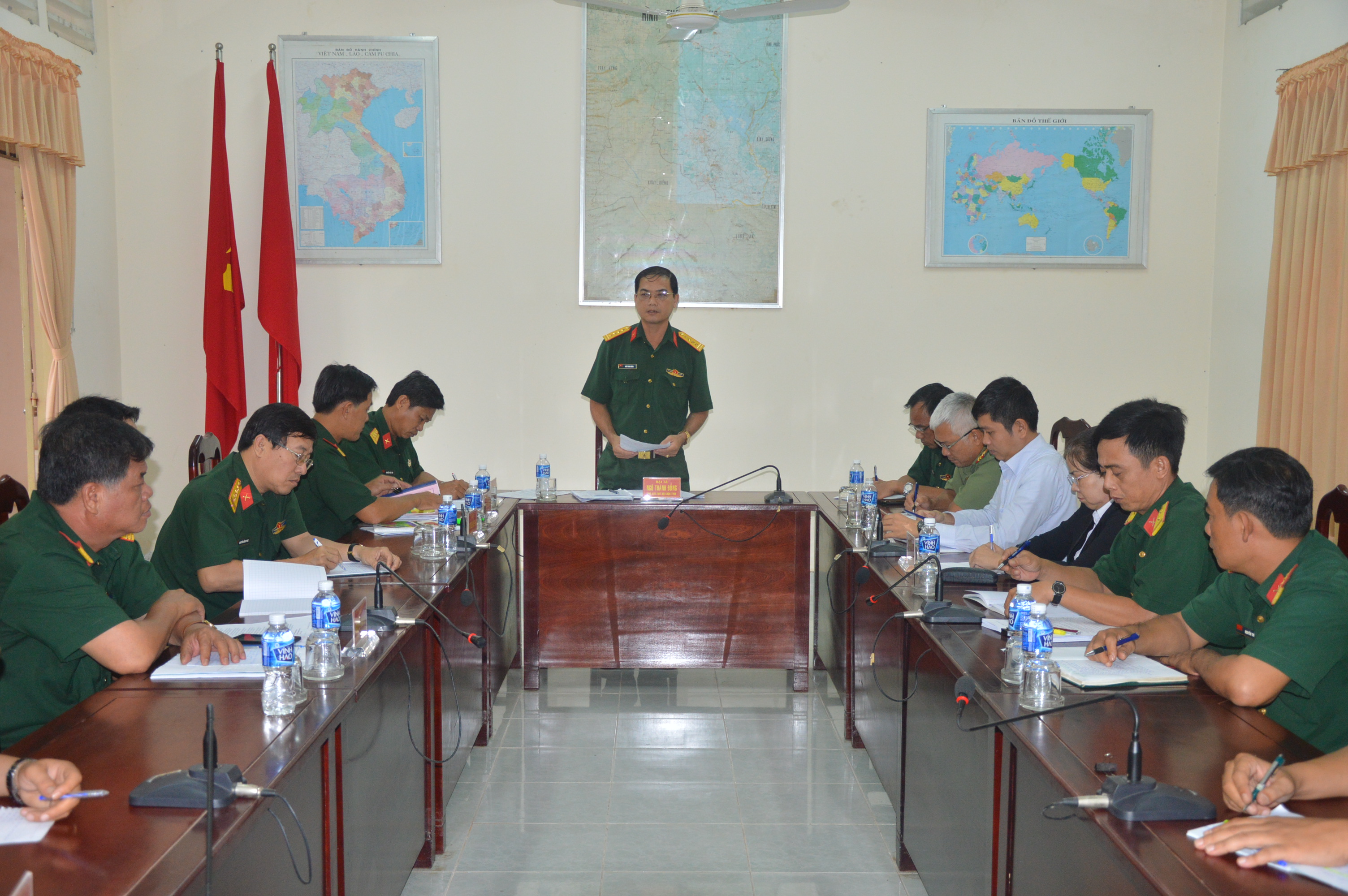 Đại tá Ngô Thành Đồng - Phó chỉ huy trưởng, Tham mưu trưởng Bộ chỉ huy quân sự tỉnhphát biểu tại buổilàm việc với Hội đồng Nghĩa vụ quân sựcác huyện, thành phố thuộc tỉnh Tây Ninh