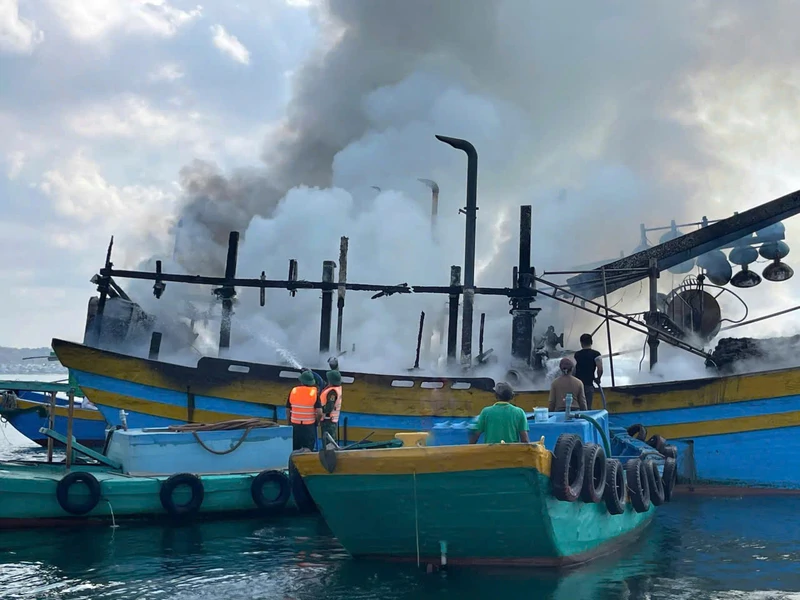 Bộ đội biên phòng Lâm Đồng cứu kịp thời 21 người trên tàu cá bị cháy