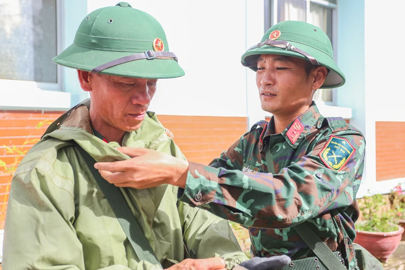 Trung tá Nguyễn Quang Duy, Tiểu đoàn trưởng Tiểu đoàn 38 dặn dò từng cán bộ, chiến sĩ trước khi thực hiện nhiệm vụ.