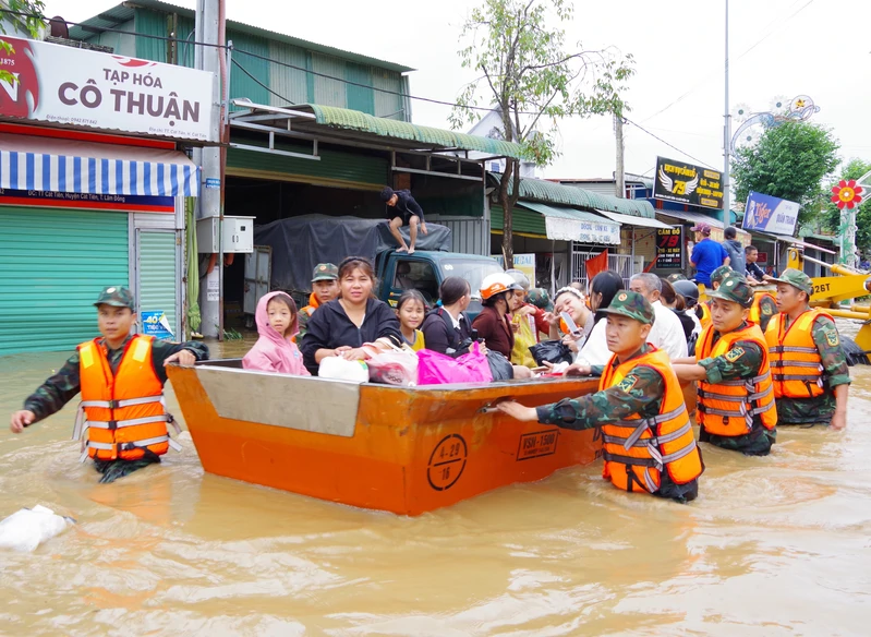 Trong ngày 21/11, tại xã Cát Tiên 2, các tổ công tác của Lữ đoàn 657, Cục Hậu cần - Kỹ thuật Quân khu 7 đã nhanh chóng triển khai lực lượng, mang theo ca nô và thuyền cứu hộ vượt qua các tuyến đường bị chia cắt để kịp thời tiếp cận những khu dân cư đang bị cô lập để phòng chống ngập lụt, giúp đỡ người dân di dời tài sản, vận chuyển hàng hoá, nhu yếu phẩm.