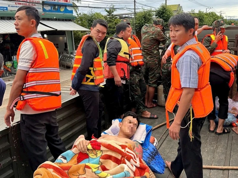 Cán bộ, chiến sĩ Lữ đoàn 657, Cục Hậu cần – Kỹ thuật Quân khu 7 hỗ trợ đưa người dân đến bệnh viện cấp cứu.