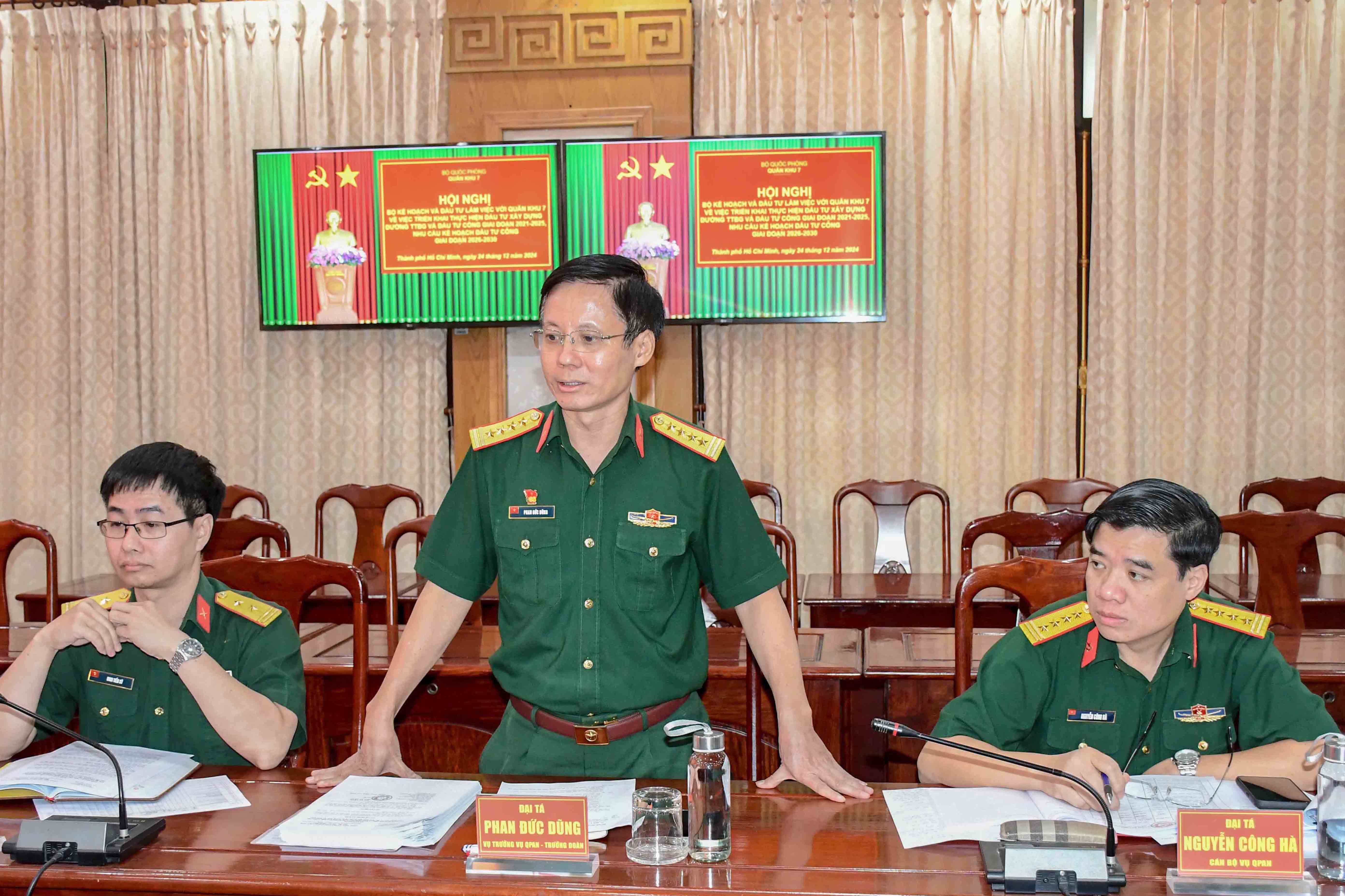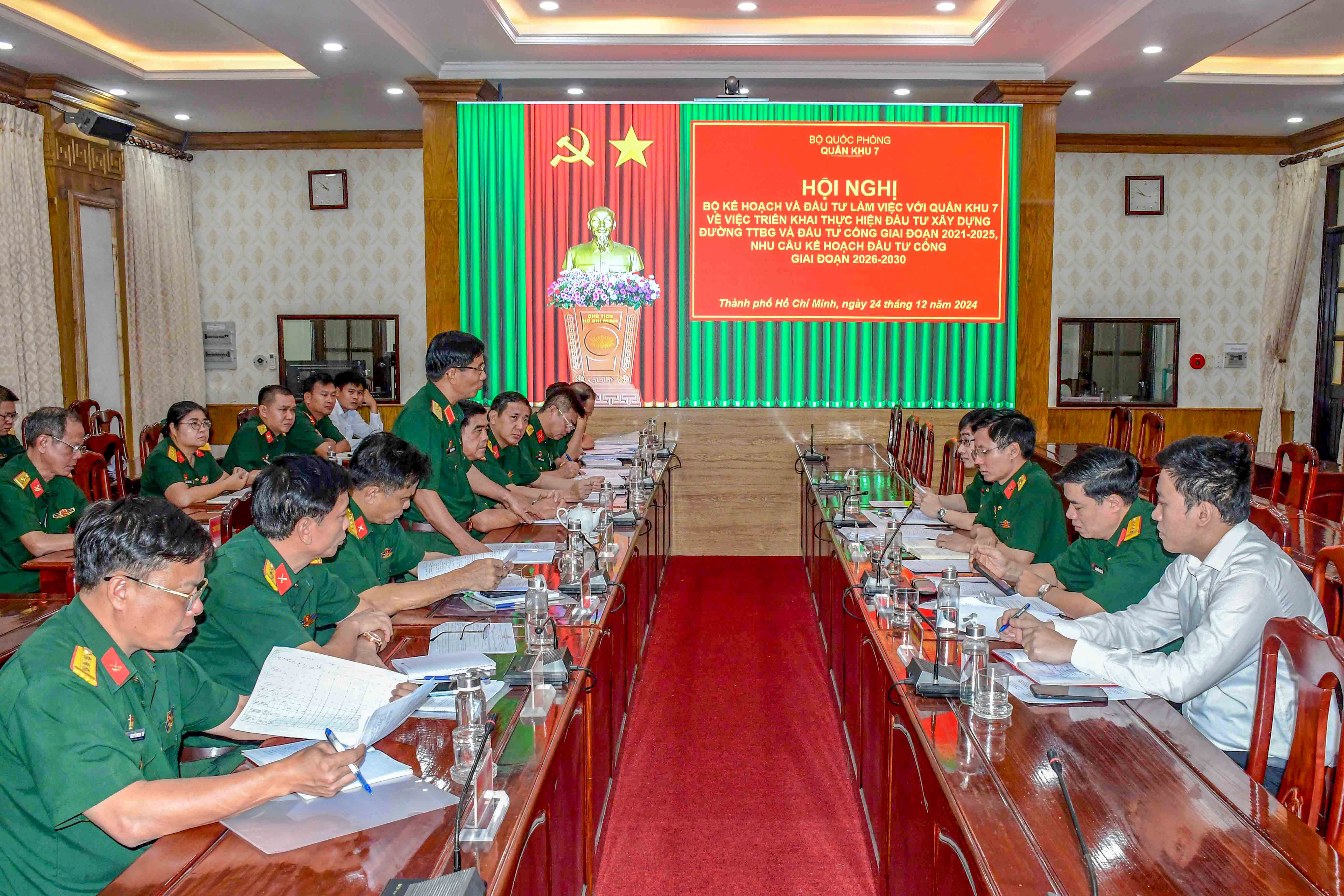 Tại hội nghị, Ban quản lý dự án đường tuần tra biên giới Quân khu 7 báo cáo kết quả thực hiện đầu tư xây dựng đường tuần tra biên giới, tình hình đầu tư công giai đoạn 2021 – 2025, nhu cầu kế hoạch đầu tư công giai đoạn 2026 – 2030.