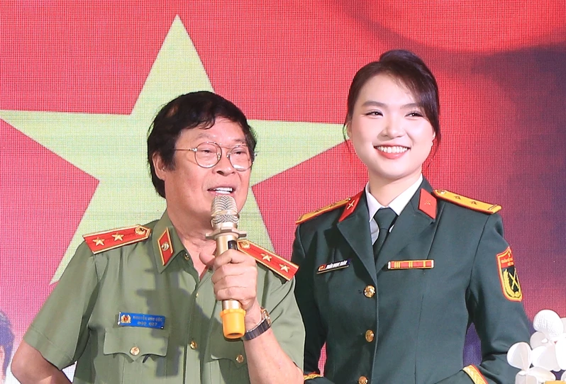 Nhà văn Hữu Ước, nguyên Phó Tổng Cục trưởng Tổng cục Chính trị Công an nhân dân trao đổi thông tin về dự án phim "Đường lên phía trước".