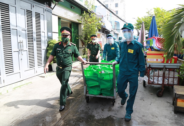 LLVT Thành phố Hồ Chí Minh vận chuyển thực phẩm hỗ trợ người dân quận Bình Tân.