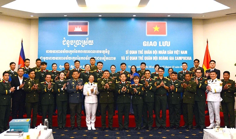 Giao lưu, tọa đàm, trao đổi giữa sĩ quan trẻ Quân đội nhân dân Việt Nam và sĩ quan trẻ Quân đội Hoàng gia Campuchia. Ảnh: QĐND