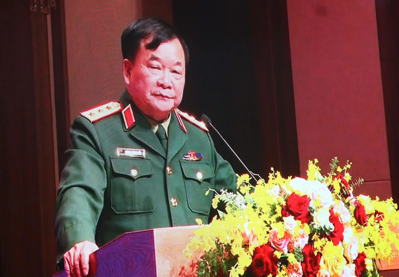 Thượng tướng Hoàng Xuân Chiến phát biểu kết luận hội nghị. Ảnh chụp màn hình