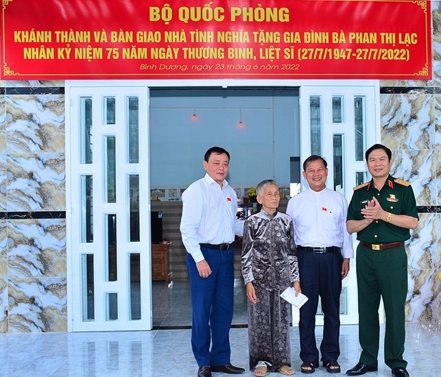 Bà Phan Thị Lạc (sinh năm 1940) là vợ liệt sĩ Nguyễn Văn Gặp, hy sinh trong kháng chiến chống Mỹ, cứu nước. Căn nhà tình nghĩa được xây dựng tại xã An Điền, thị xã Bến Cát, là loại nhà cấp 4. Trong đó, Bộ Quốc phòng hỗ trợ kinh phí xây dựng 80 triệu đồng.