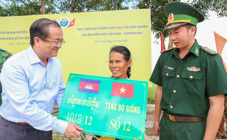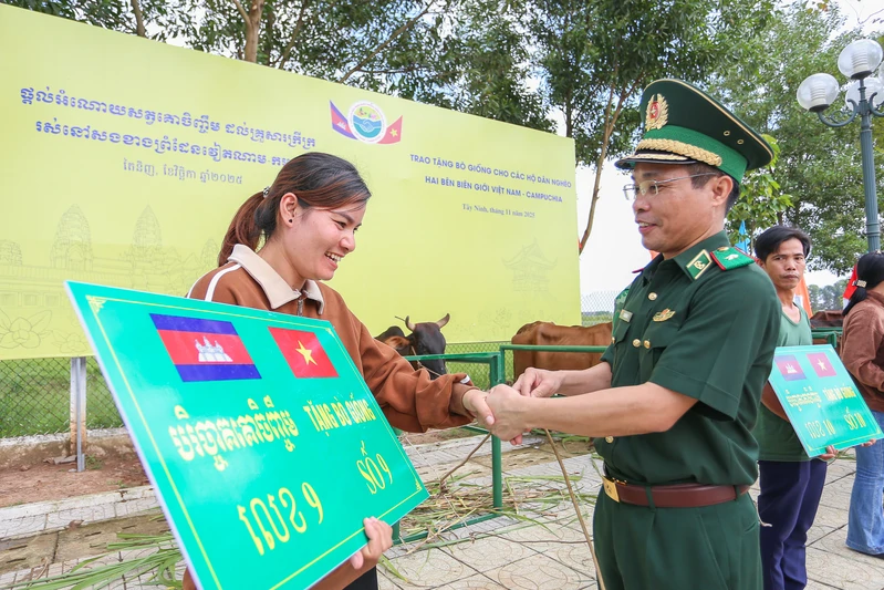 (QK7 Online) - Sáng này 8/11, tại xã Long Thuận, tỉnh Tây Ninh, Bộ Quốc phòng Việt Nam tổ chức chương trình tặng 20 con bò giống, mỗi con trị giá 20 triệu đồng tặng các hộ gia đình có hoàn cảnh khó khăn trên địa bàn khu vực biên giới hai nước Việt Nam – Campuchia. Đây là hoạt động ý nghĩa nằm trong khuôn khổ Chương trình Giao lưu hữu nghị quốc phòng biên giới Việt Nam – Campuchia lần thứ 2.