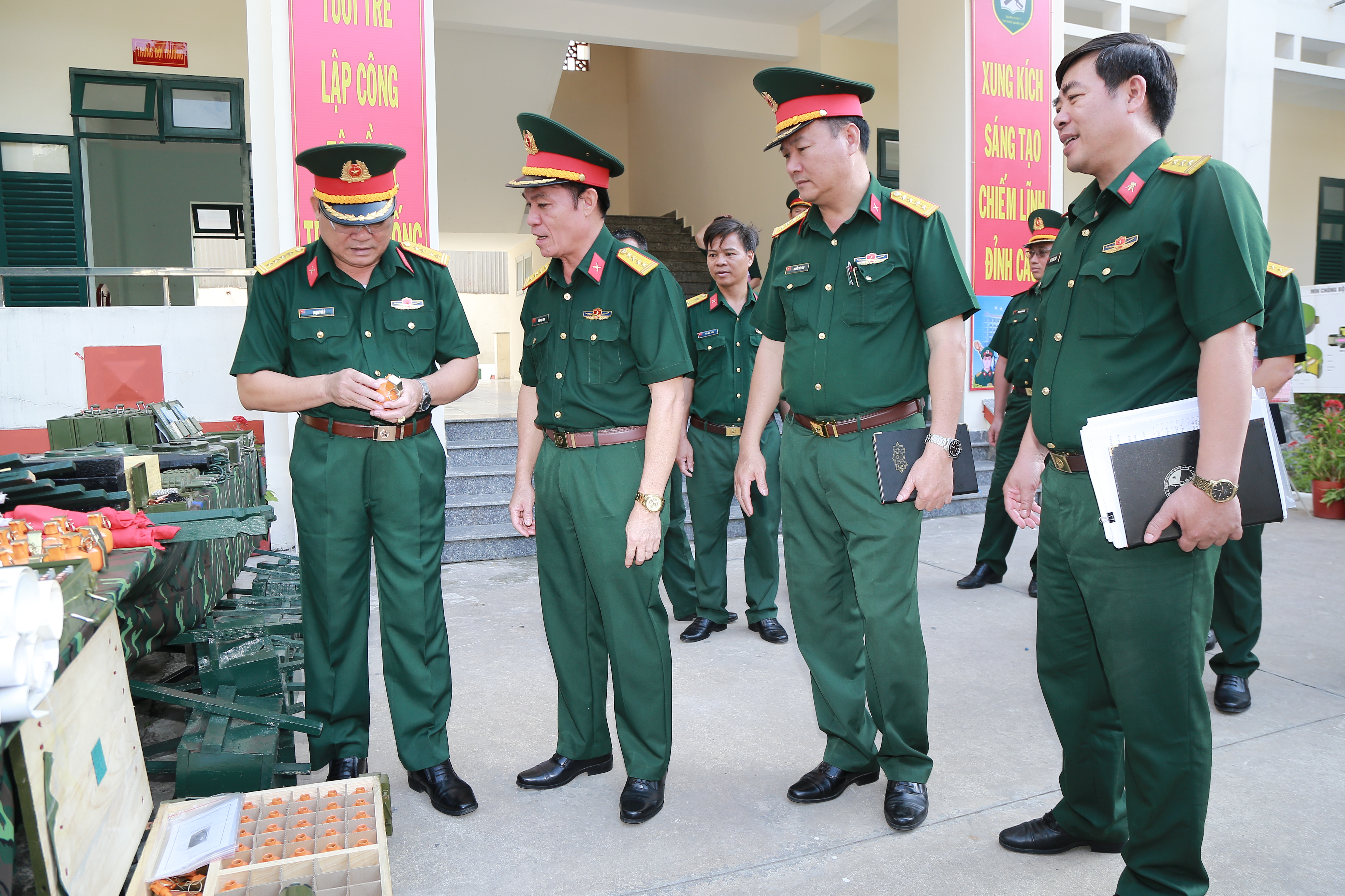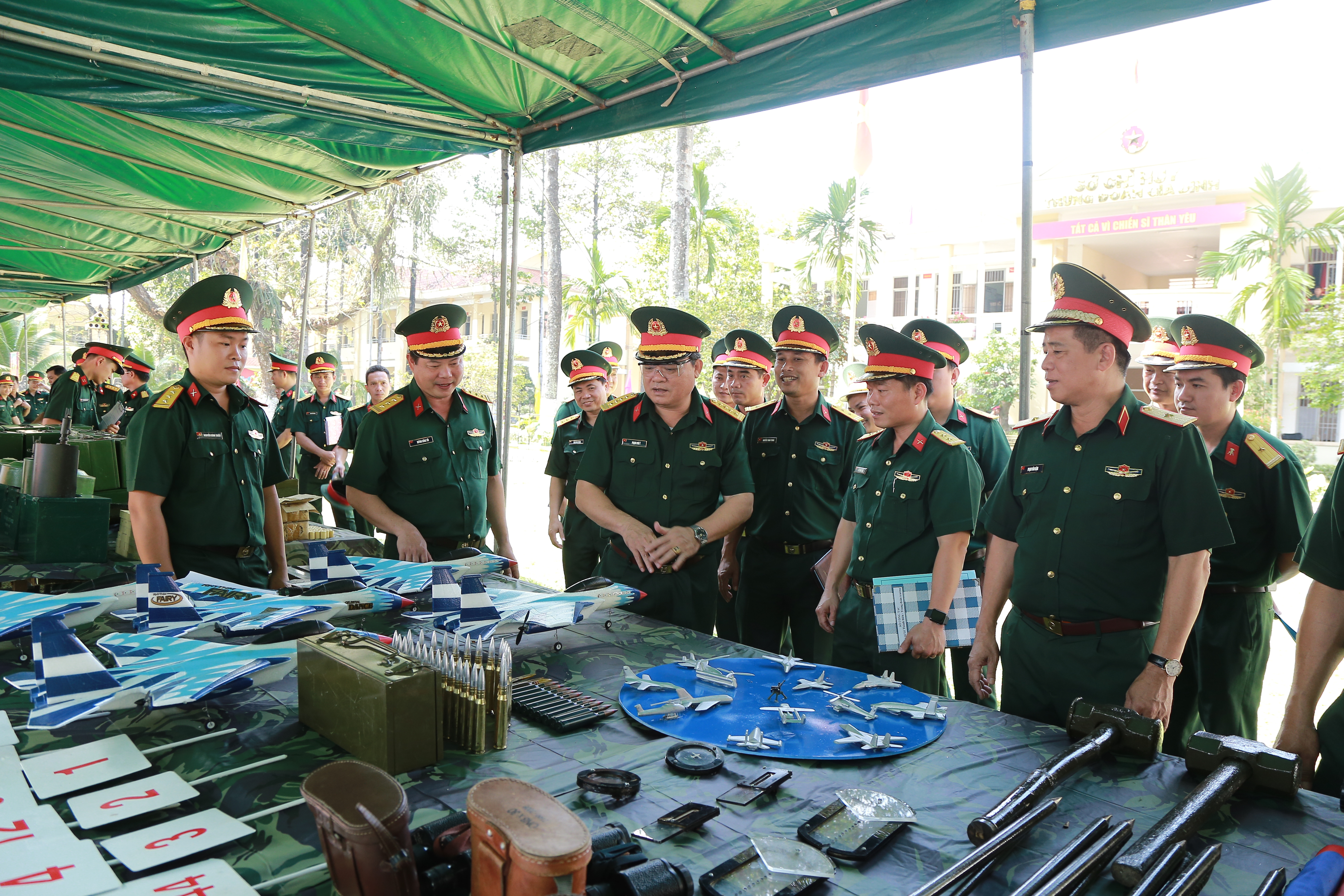 Đoàn công tác Bộ Tư lệnh Quân khu, Bộ Tư lệnh TP.HCM tham quan các mô hình học cụ huấn luyện CSM của Trung đoàn Gia Định.