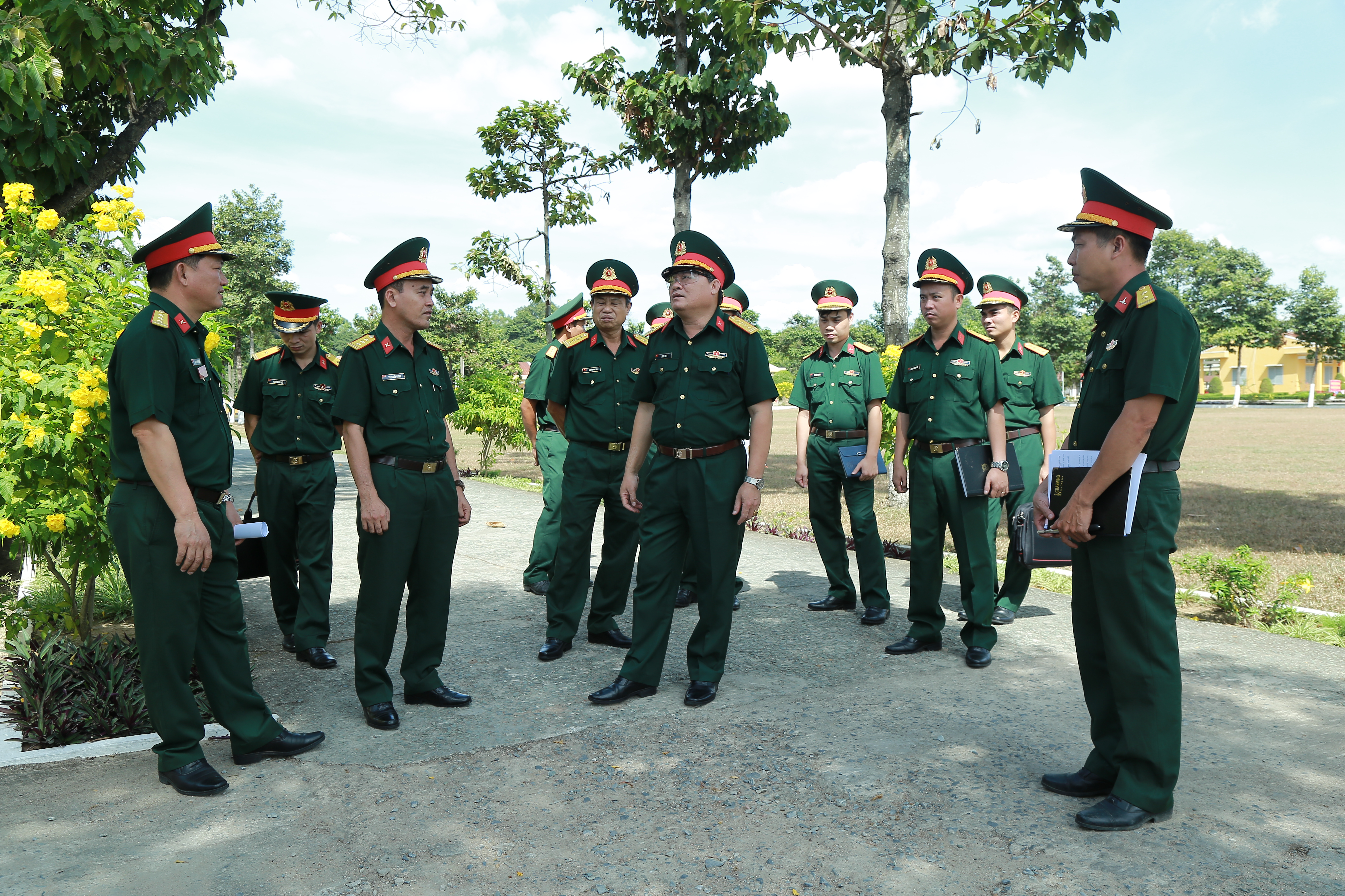 Đại tá Phạm Phú Ý, Phó Tham mưu trưởng Quân khu và đoàn công tác đến kiểm tra công tác tiếp nhận, huấn luyện CSM Trường Quân sự Quân khu.