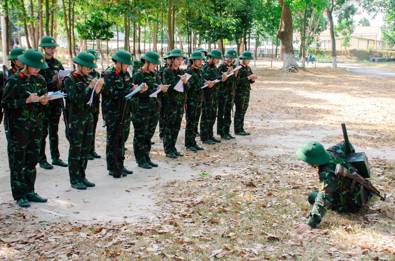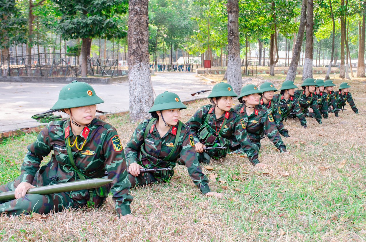 Kiểm tra huấn luyện chiến thuật chiến sĩ mới nữ.