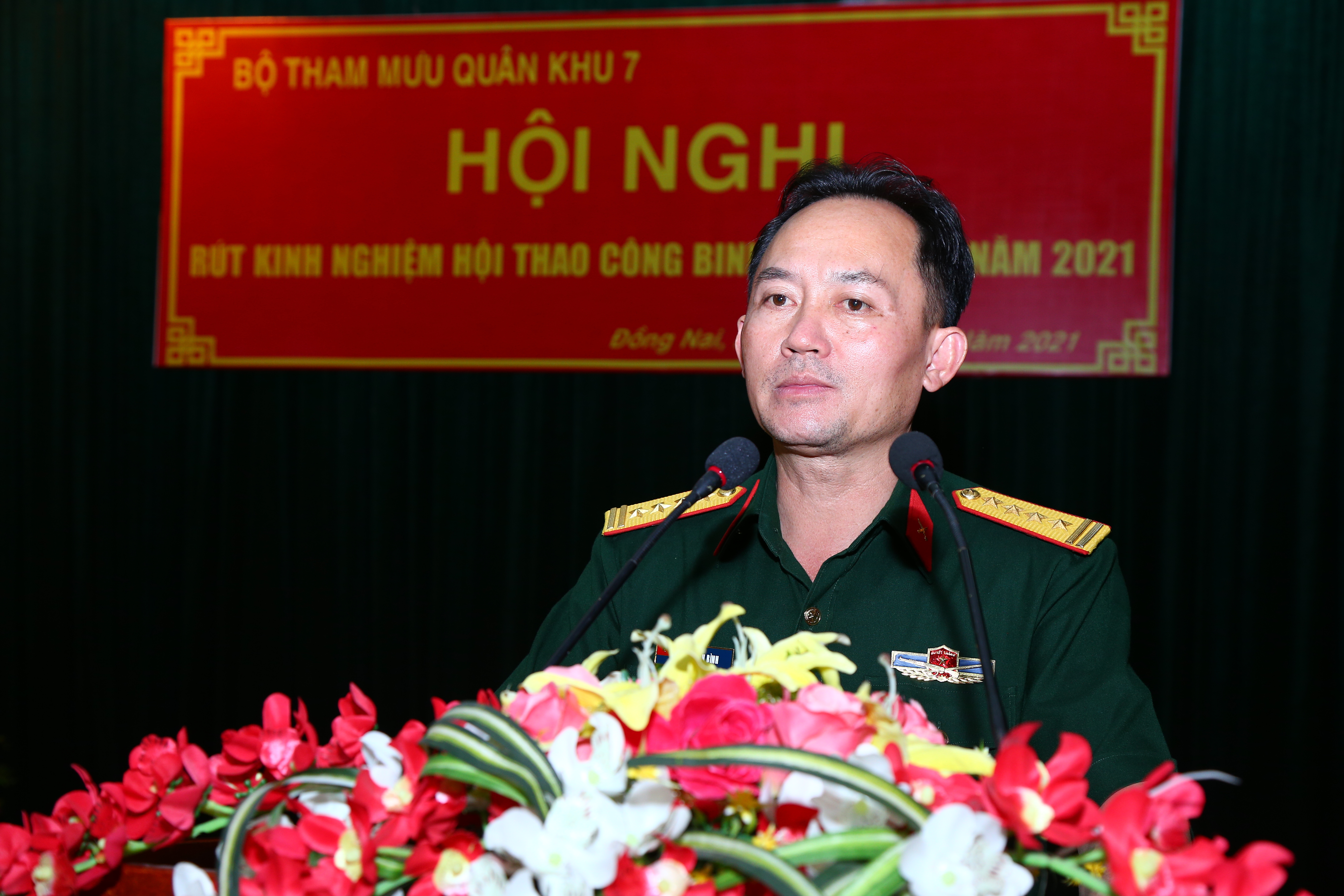 Phát biểu tại hội nghị, Đại tá Lê Thanh Bình, Phó Tham mưu trưởng Quân khu biểu dương, đánh giá cao những kết quả đạt được của đoàn hội thao. Từ thực tiễn tham gia hội thao lần này, lãnh đạo, chỉ huy các cơ quan, đơn vị cần tiếp tục làm tốt công tác tham mưu cho Bộ Tư lệnh Quân khu về nhiệm vụ công binh; xây dựng đội ngũ cán bộ công binh đáp ứng yêu cầu nhiệm vụ, đủ về số lượng, mạnh về phẩm chất chính trị và trình độ chuyên môn, bảo đảm sức khỏe, sẵn sàng hoàn thành tốt nhiệm vụ trong mọi tình huống; tổ chức rút kinh nghiệm tham gia hội thao cấp mình, kịp thời triển khai vận dụng những nội dung mới, kinh nghiệm từ thực tiễn hội thao vào quá trình tổ chức thực hiện nhiệm vụ ở đơn vị phù hợp, hiệu quả, sát yêu cầu…