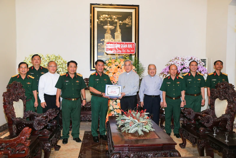 (QK7 Online) - Sáng 23/12, đoàn công tác Bộ Tư lệnh Quân khu 7 do Đại tá Nguyễn Tấn Linh, Phó Tư lệnh Quân khu làm trưởng đoàn đến thăm, chúc mừng Tòa Tổng Giám mục Thành phố Hồ Chí Minh nhân dịp Lễ Giáng sinh năm 2025. Tiếp đoàn có Đức Tổng Giám mục Giuse Nguyễn Năng và các thành viên Hội đồng Mục vụ.