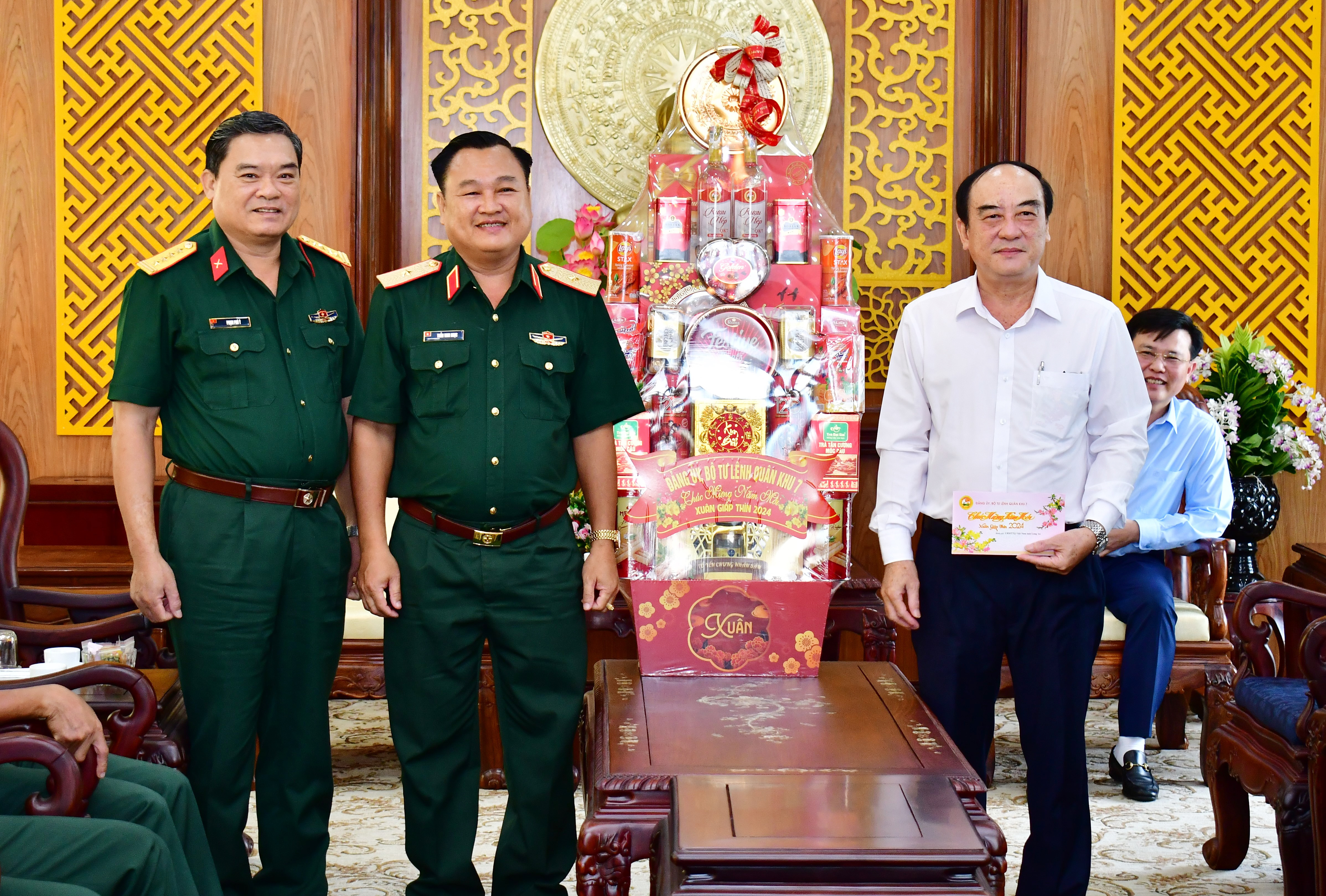 Thay mặt lãnh đạo Tỉnh ủy, đồng chí Nguyễn Thanh Hải chúc thủ trưởng Bộ Tư lệnh Quân khu và cán bộ, chiến sĩ LLVT Quân khu và gia đình đón Xuân Giáp Thìn 2024 thật nhiều sức khoẻ, hạnh phúc; năm mới gặt hái nhiều thắng lợi mới.