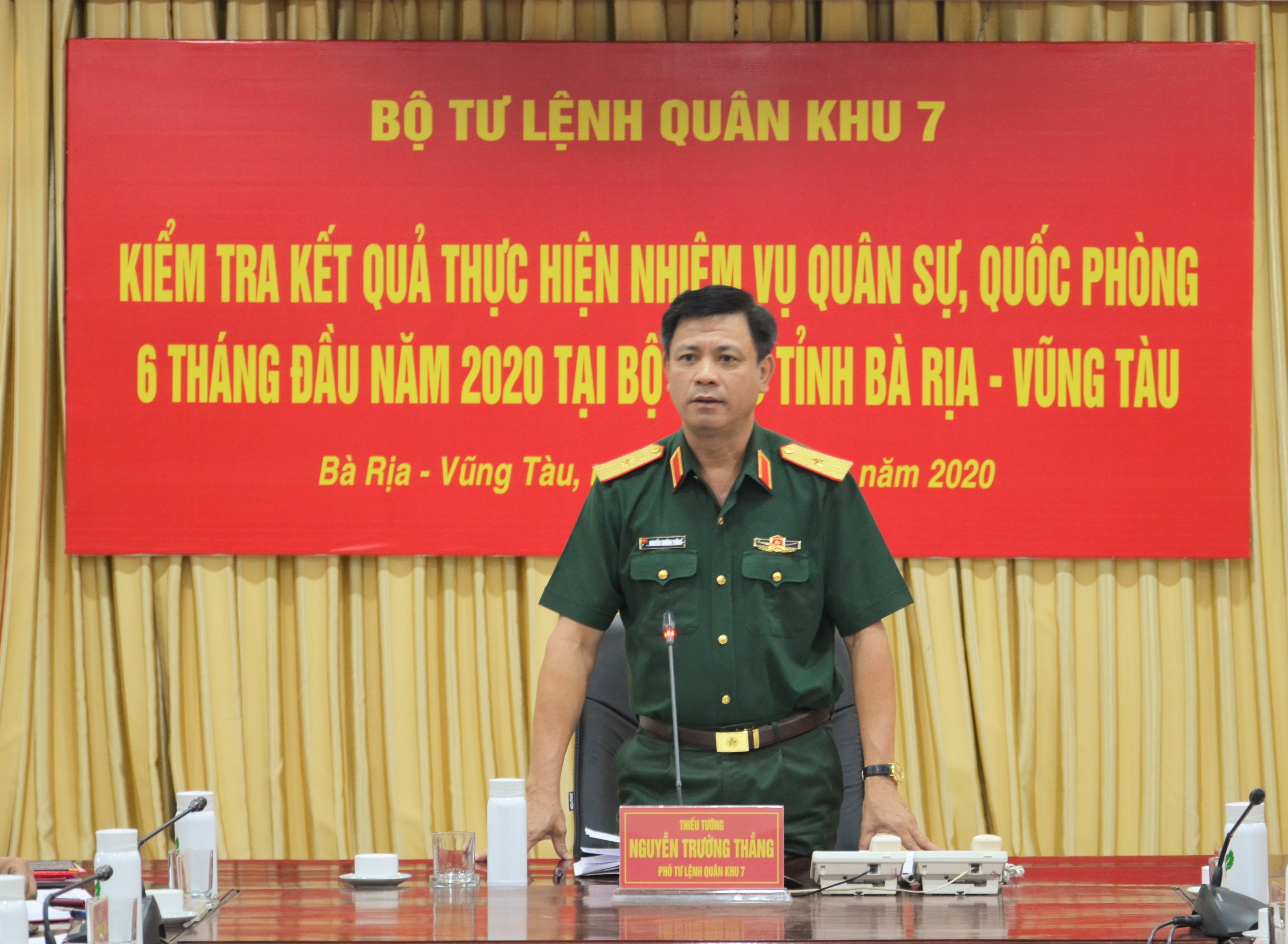 Bộ Tư lệnh Quân khu 7 kiểm tra công tác quân sự - quốc phòng 6 tháng đầu năm 2020 tại Bộ Chỉ huy quân sự tỉnh Bà Rịa – Vũng Tàu