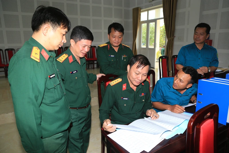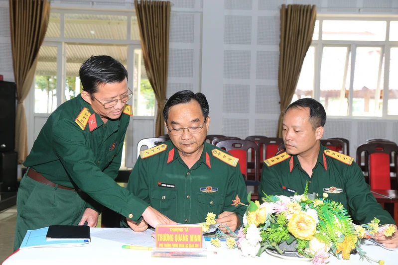 Thượng tá Trương Quang Minh, Phó Trưởng Phòng Quân lực Quân khu kiểm tra các nội dung theo kế hoạch.