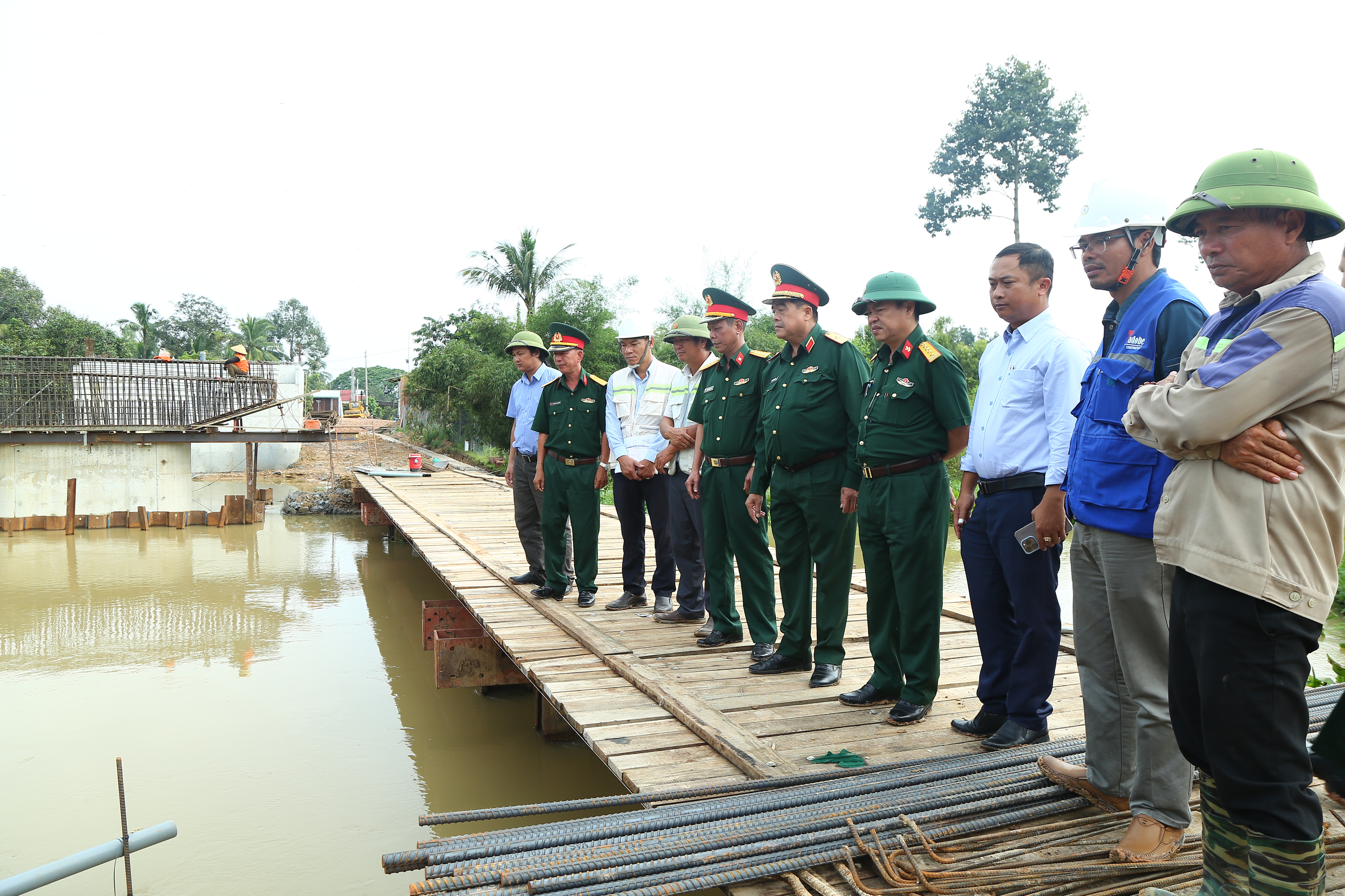 Đoàn công tác kiểm tra tiến độ xây dựng tại khu vực cầu Nàng Dình.