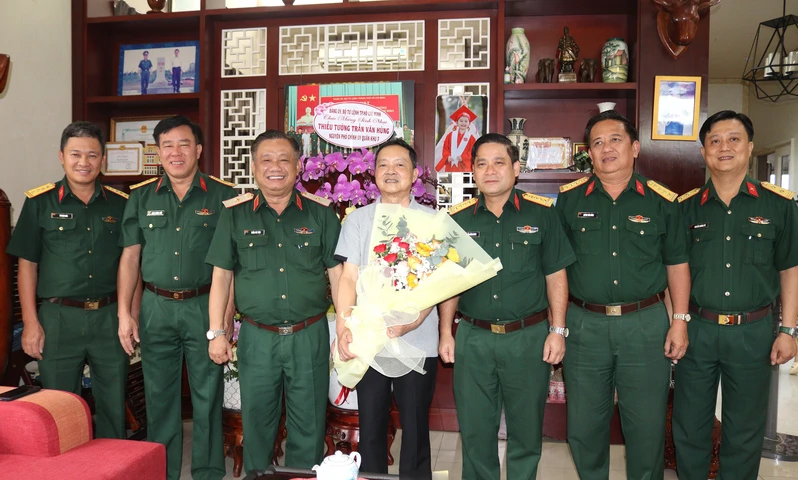 (QK7 Online) - Sáng 15/11, tại Thành phố Hồ Chí Minh, đoàn công tác Bộ Tư lệnh Quân khu 7 do Thiếu tướng Trần Chí Tâm, Ủy viên Ban Thường vụ Đảng ủy, Phó Chính ủy Quân khu làm trưởng đoàn đến thăm, chúc thọ Thiếu tướng Trần Văn Hùng, nguyên Phó Chính ủy Quân khu 7 dịp sinh nhật 70 tuổi.
