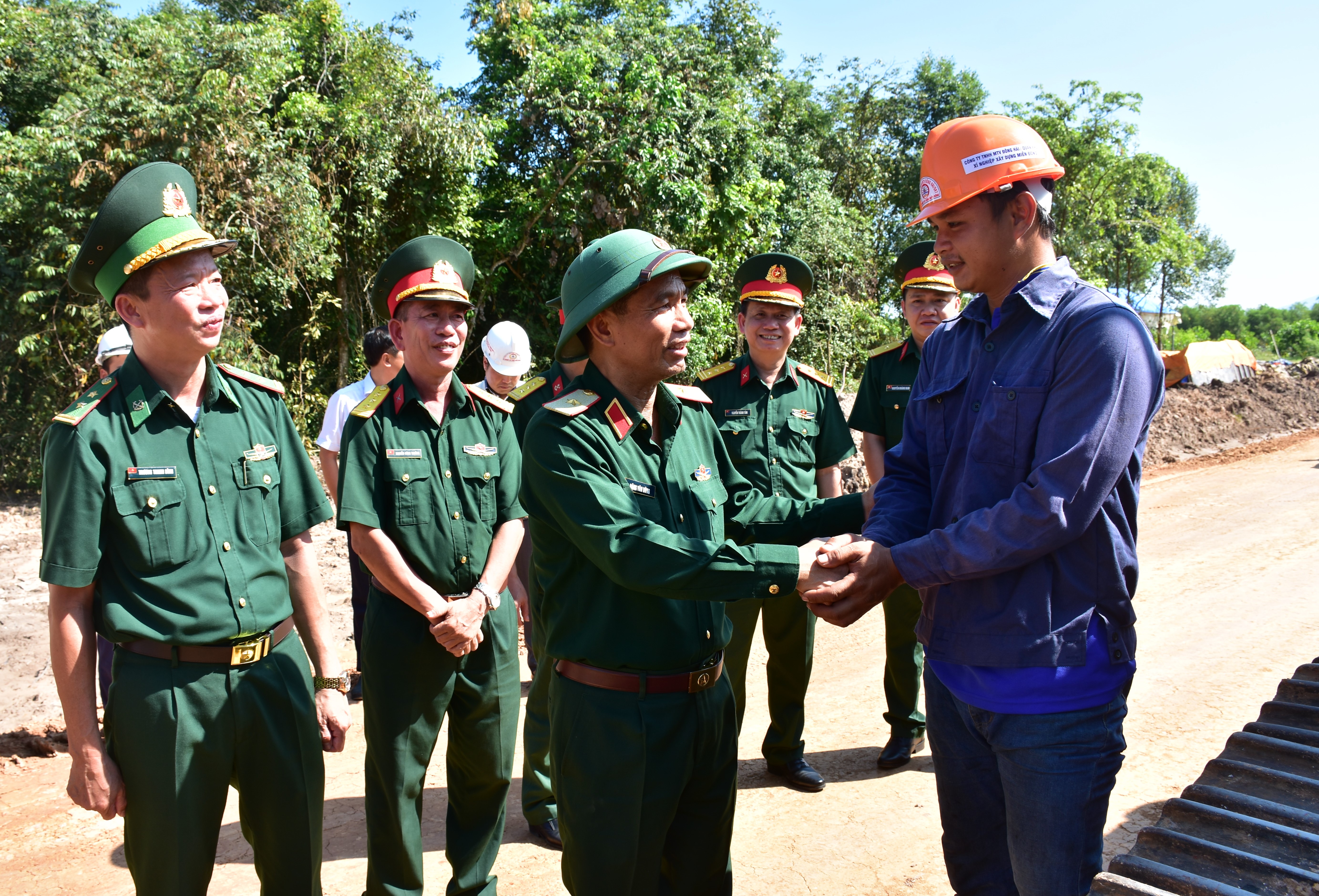 Thiếu tướng Đặng Văn Hùng, Phó Tư lệnh, Tham mưu trưởng Quân khu thăm hỏi, động viên công nhân lái máy đang thi công đường tuần tra biên bới.