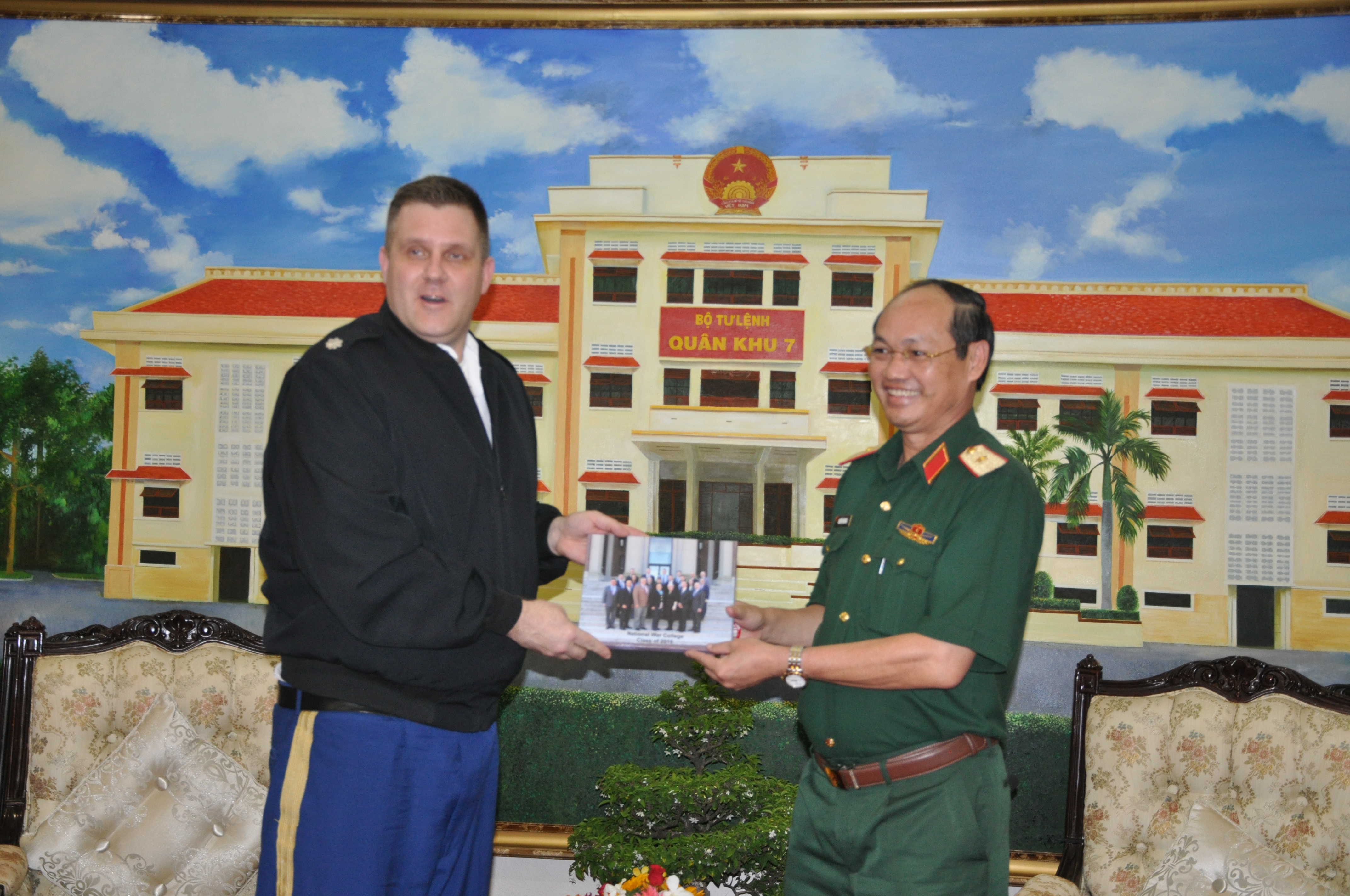 (QK7 Online) - Chiều ngày 22/9, Đại tá Nguyễn Tấn Linh, Phó Tư lệnh Quân khu 7 tiếp đoàn công tác của Tàu HMS Richmond, Hải quân Hoàng gia Anh do Trung tá Richard Kemp OBE, Thuyền trưởng làm trưởng đoàn đến chào xã giao, nhân chuyến công tác tại Thành phố Hồ Chí Minh. Cùng tiếp đoàn có Đại tá Trần Hữu Nhân, Phó Tham mưu trưởng Quân khu; Đại tá Thái Thành Đức, Phó Chủ nhiệm Chính trị Quân khu; Đại tá Trần Văn Long, Phó Chính ủy Cục Hậu cần – Kỹ thuật Quân khu cùng Thủ trưởng các cơ quan Quân khu.