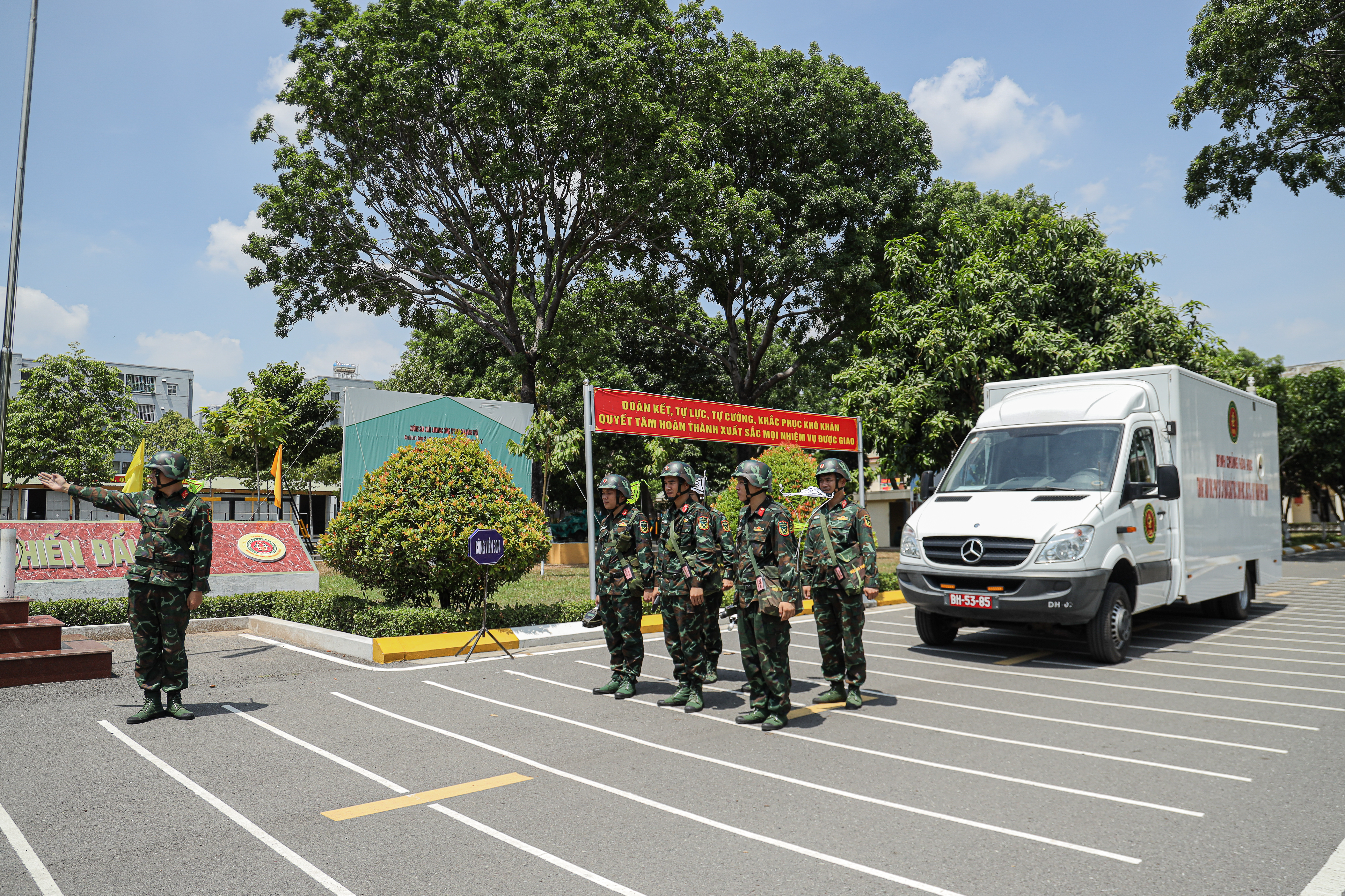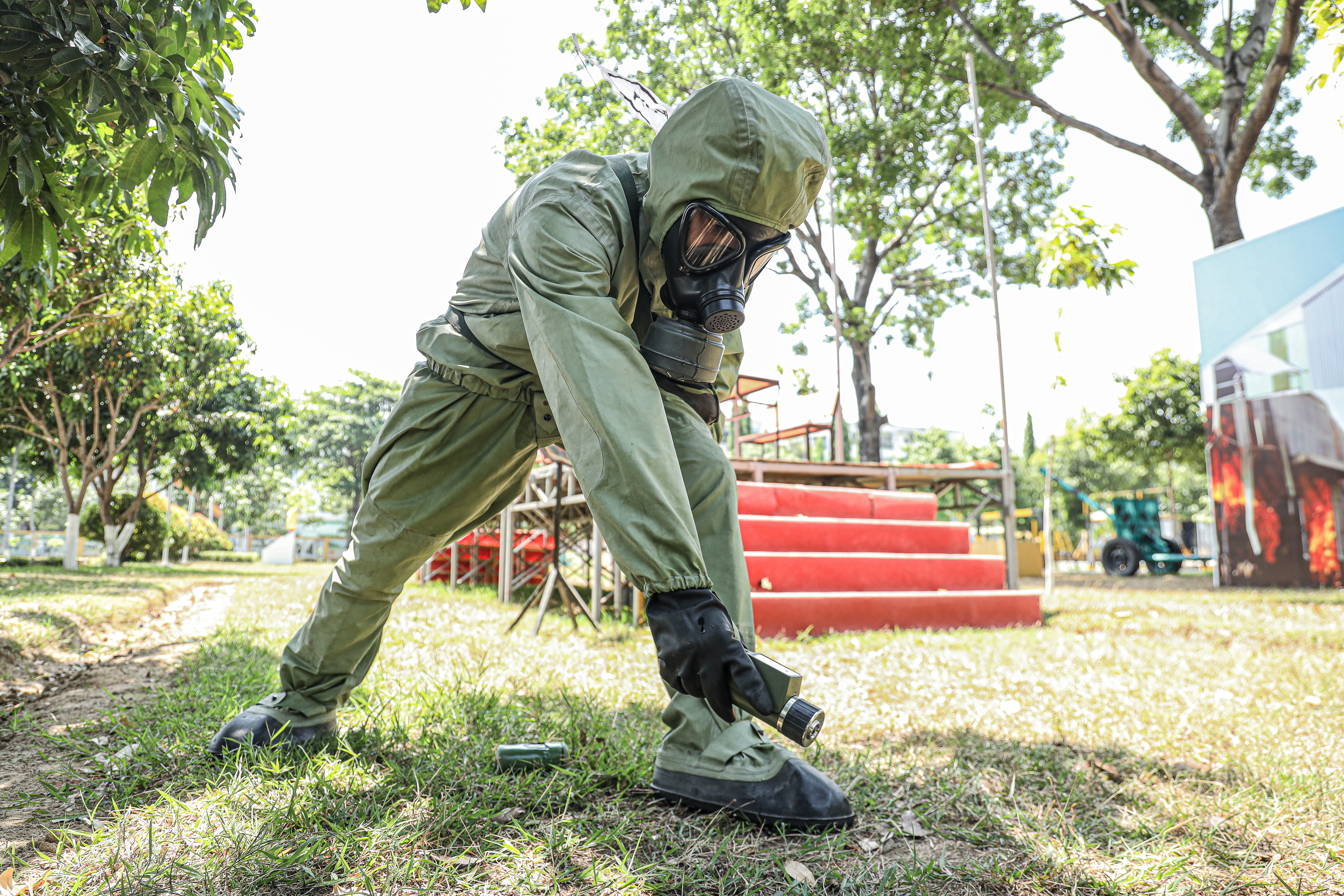 Giữa những ngày nắng gắt của phương Nam tháng Tư, cán bộ, chiến sĩ Lữ đoàn miệt mài huấn luyện với trang bị đặc chủng, trong đó có những bộ đồ bảo hộ phòng hóa nặng nề, kính bảo hộ chuyên dụng, bảo đảm an toàn trong điều kiện môi trường độc hại, sẵn sàng hoàn thành tốt mọi nhiệm vụ được giao.