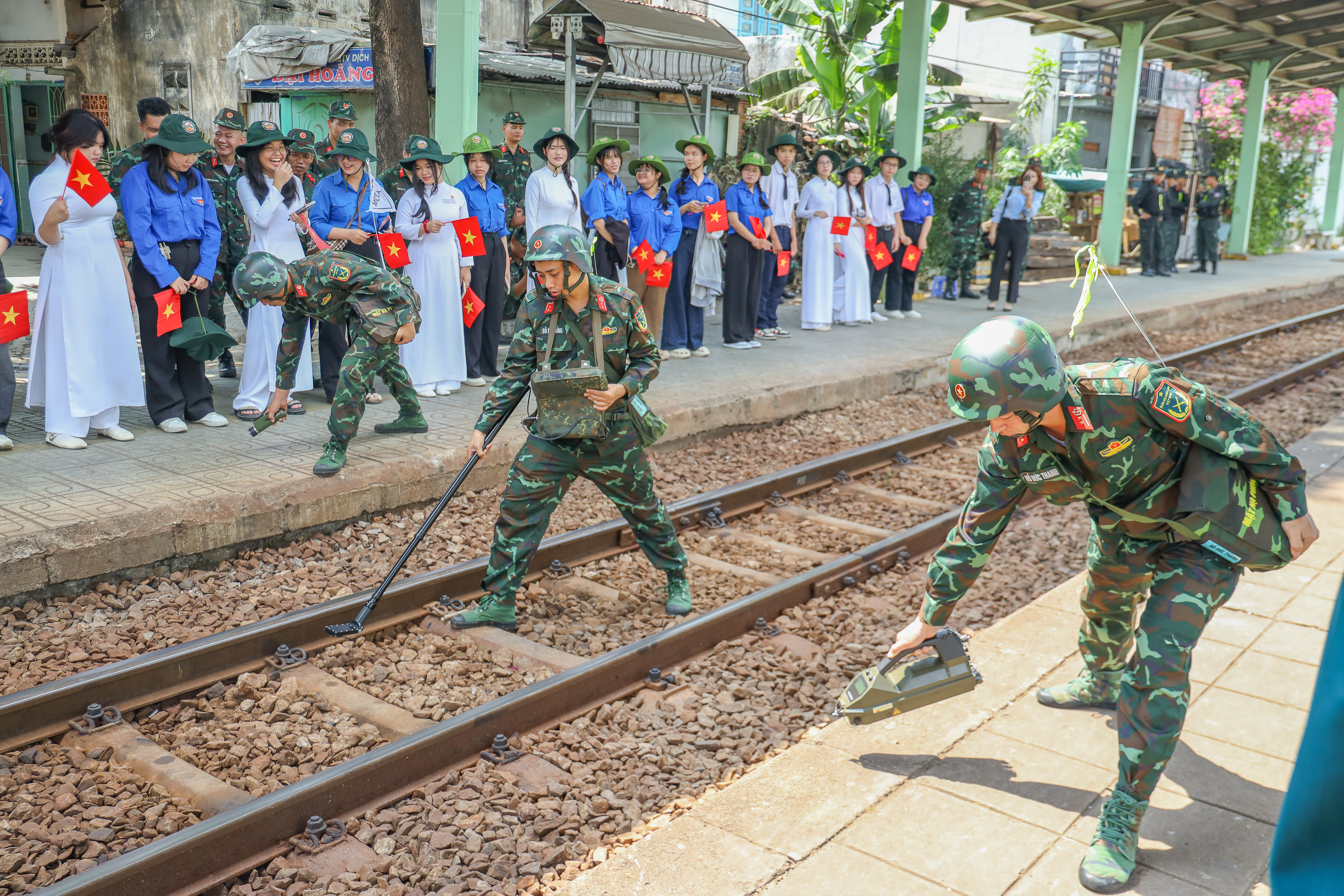 Phân đội trinh sát đơn vị đảm bảo an toàn tuyệt đối các ngày giao nhận cán bộ, chiến sĩ tham gia diễu binh diễu hành tại ga Biên Hòa.