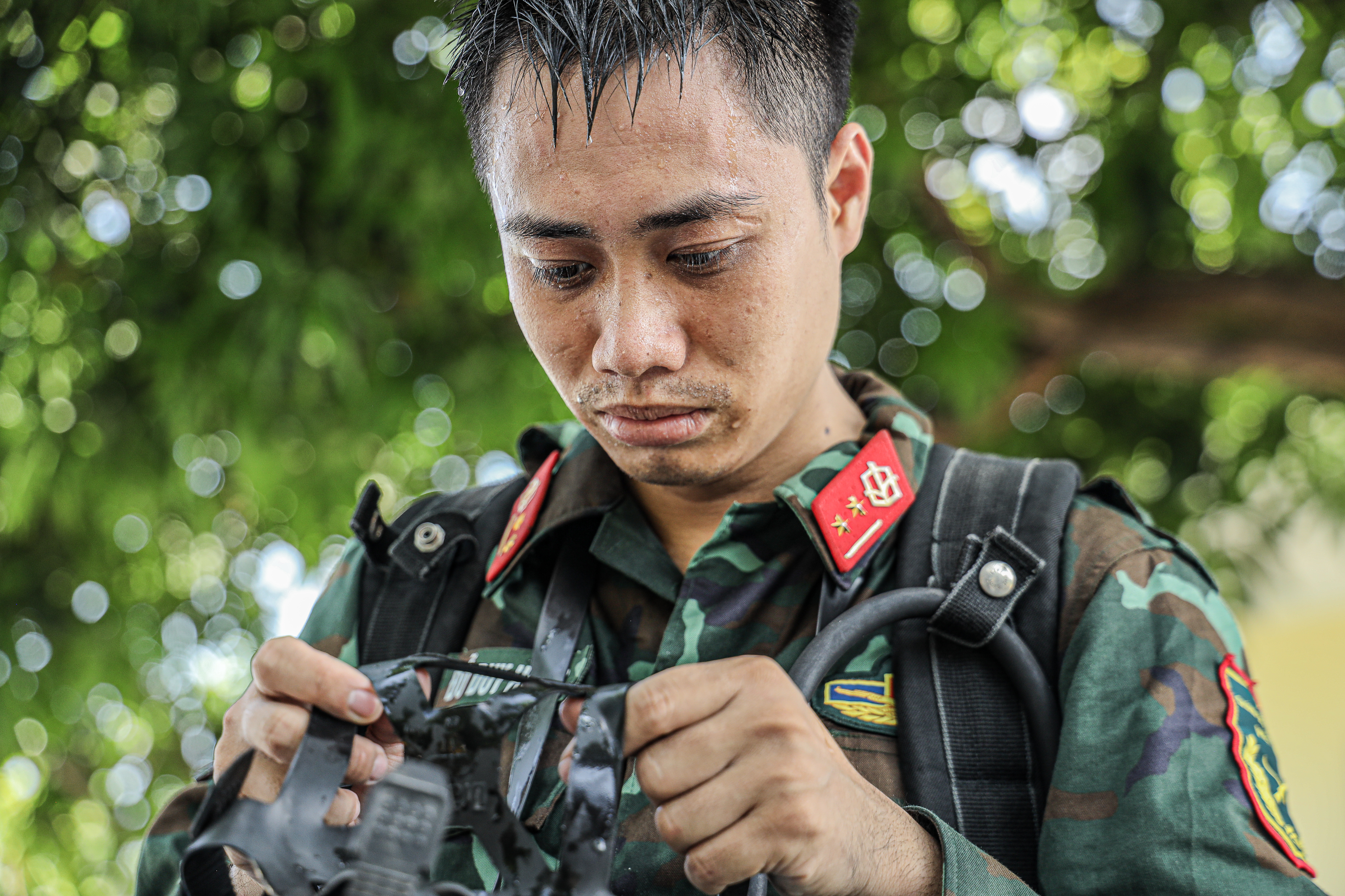 Gương mặt đẫm mồ hôi của Trung úy Đỗ Duy Hùng sau nhiều giờ huấn luyện.